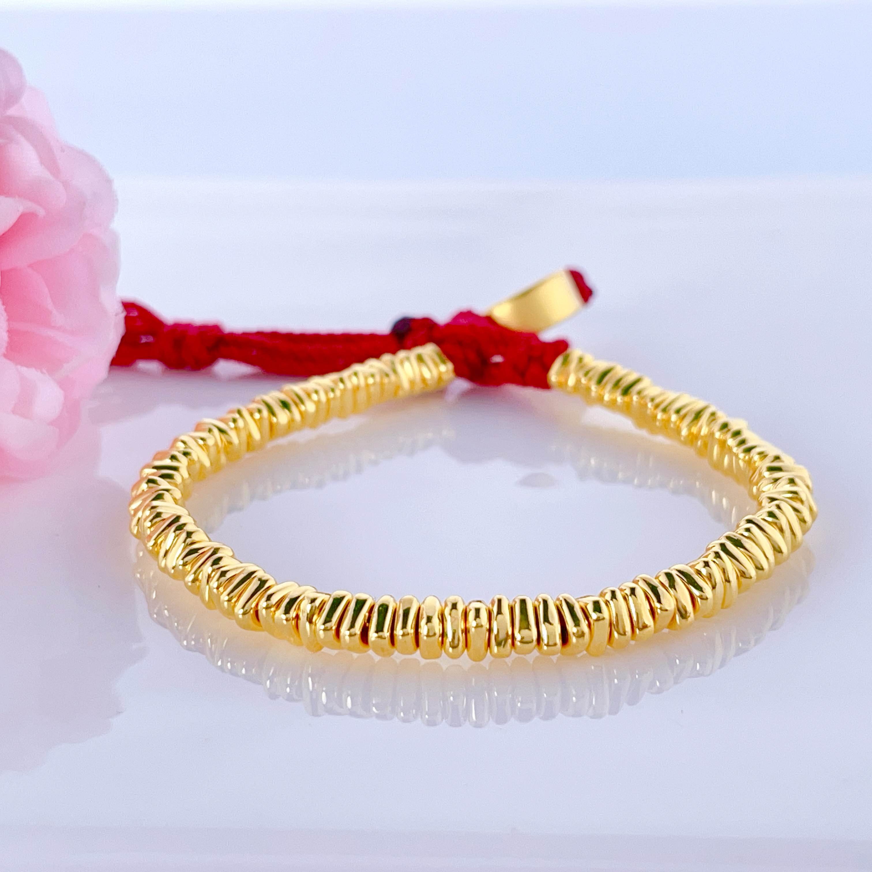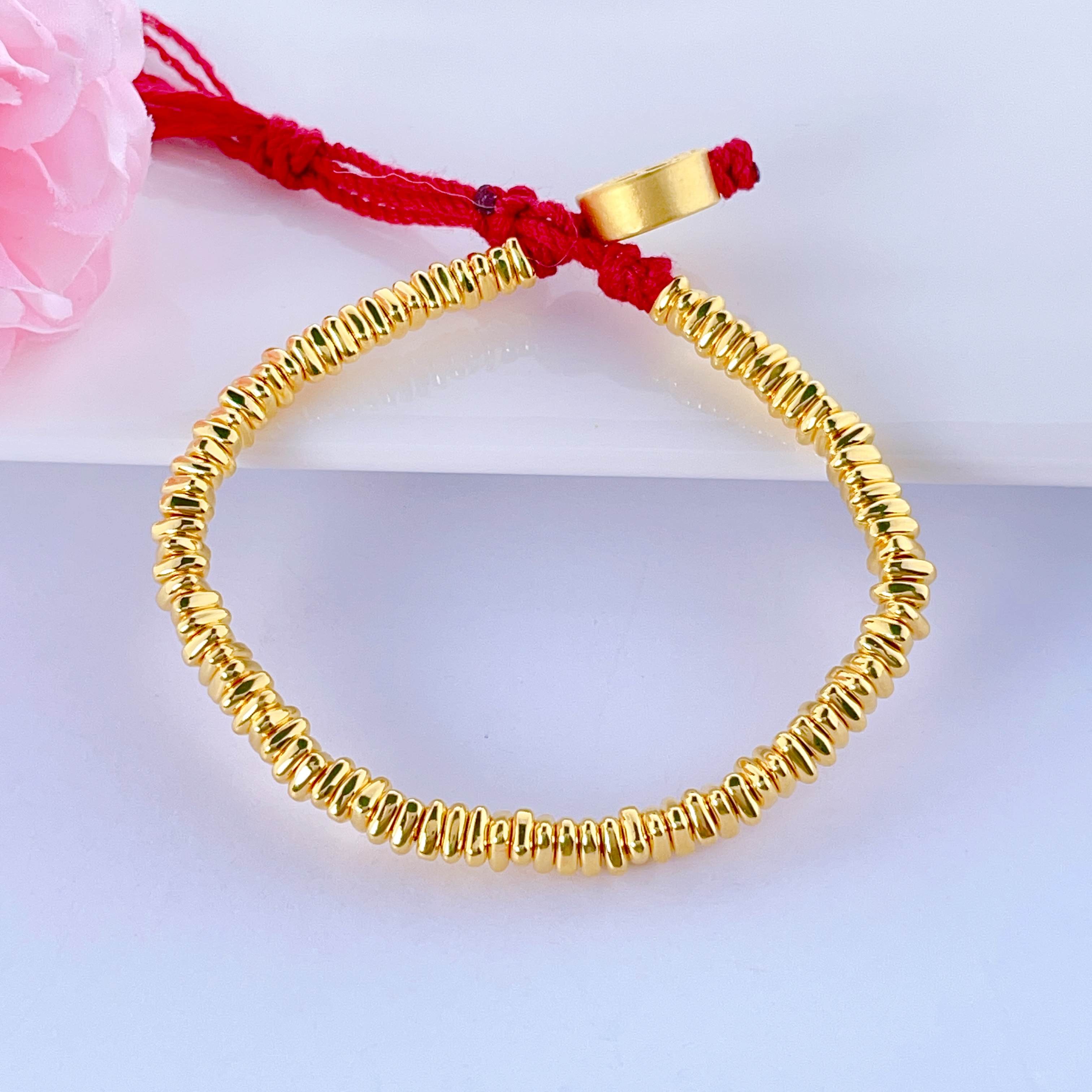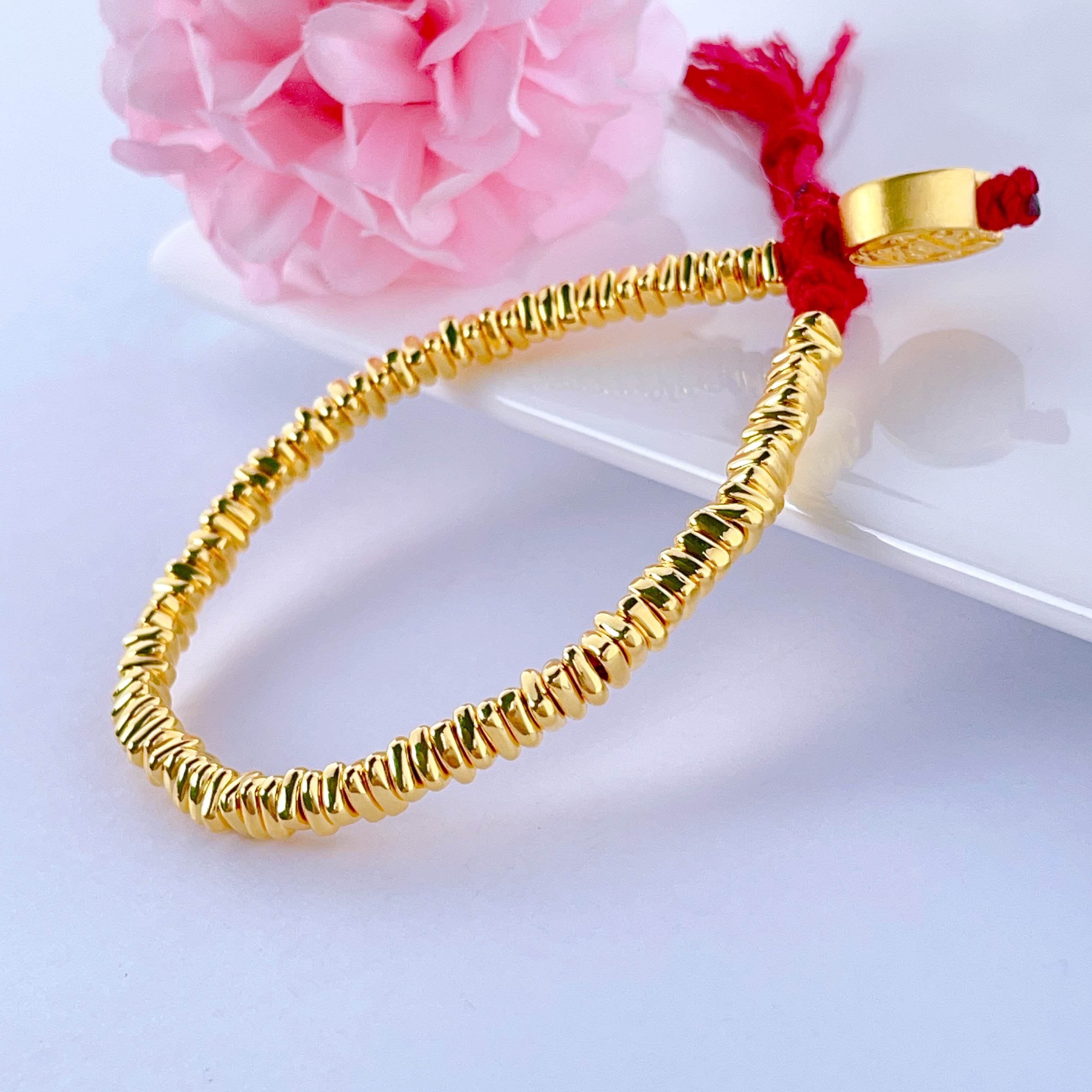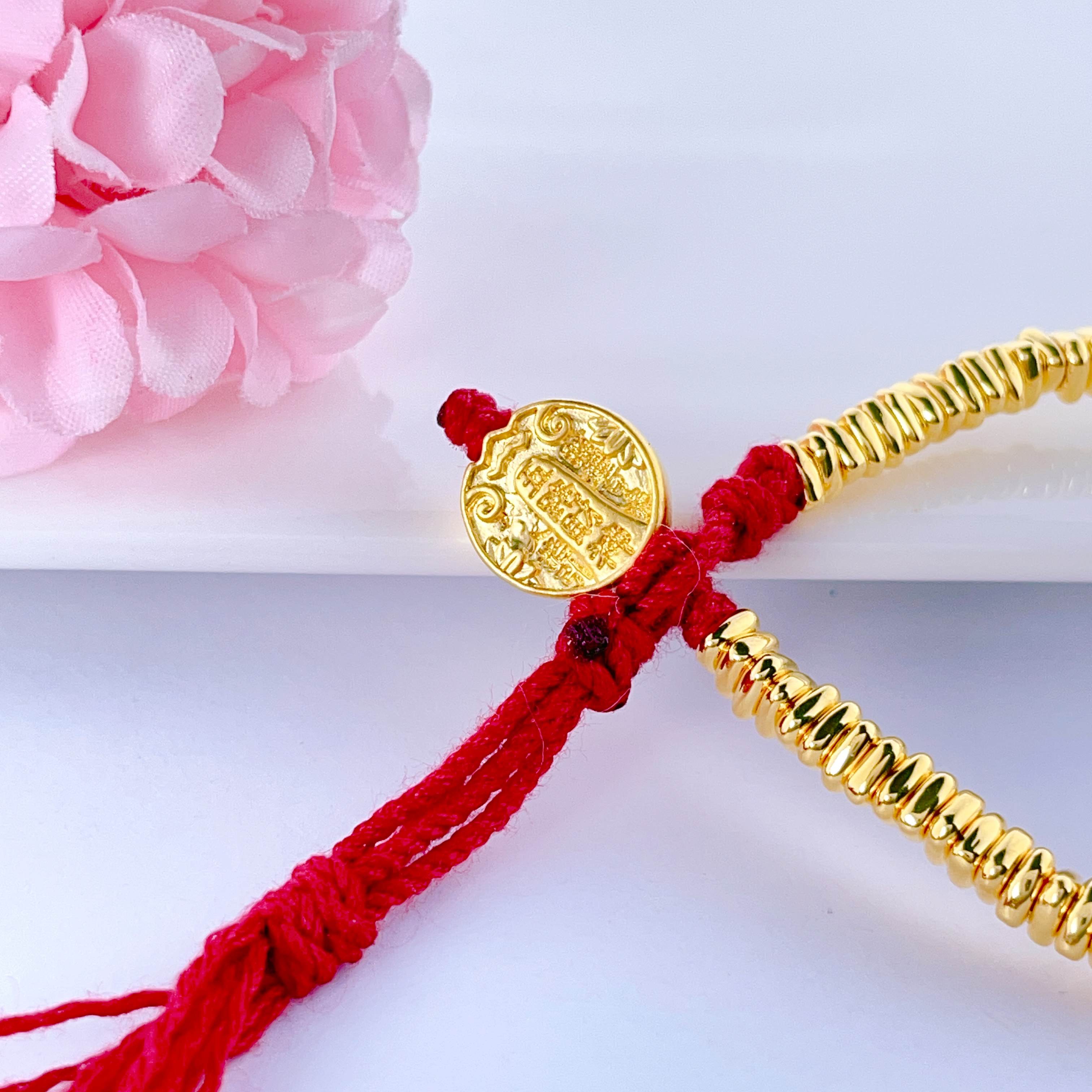 【限时7.5折】【定价黄金】足金 #小红书 #电商超轻 #盘缠 无氰5D五路财神手串碎碎金红绳调节成品手串(AJ5DSC00008)(预售产品下单后不退款不退货不换货不补差价)