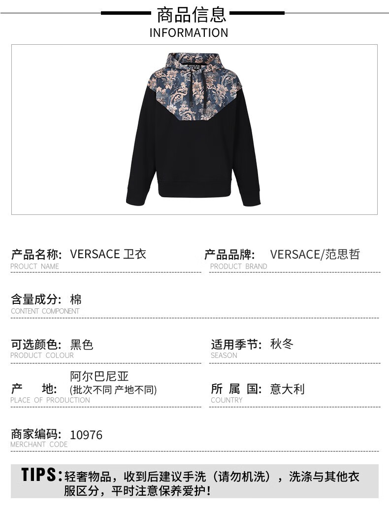 VERSACE JEANS COUTURE 男士 时尚潮流卫衣 10976