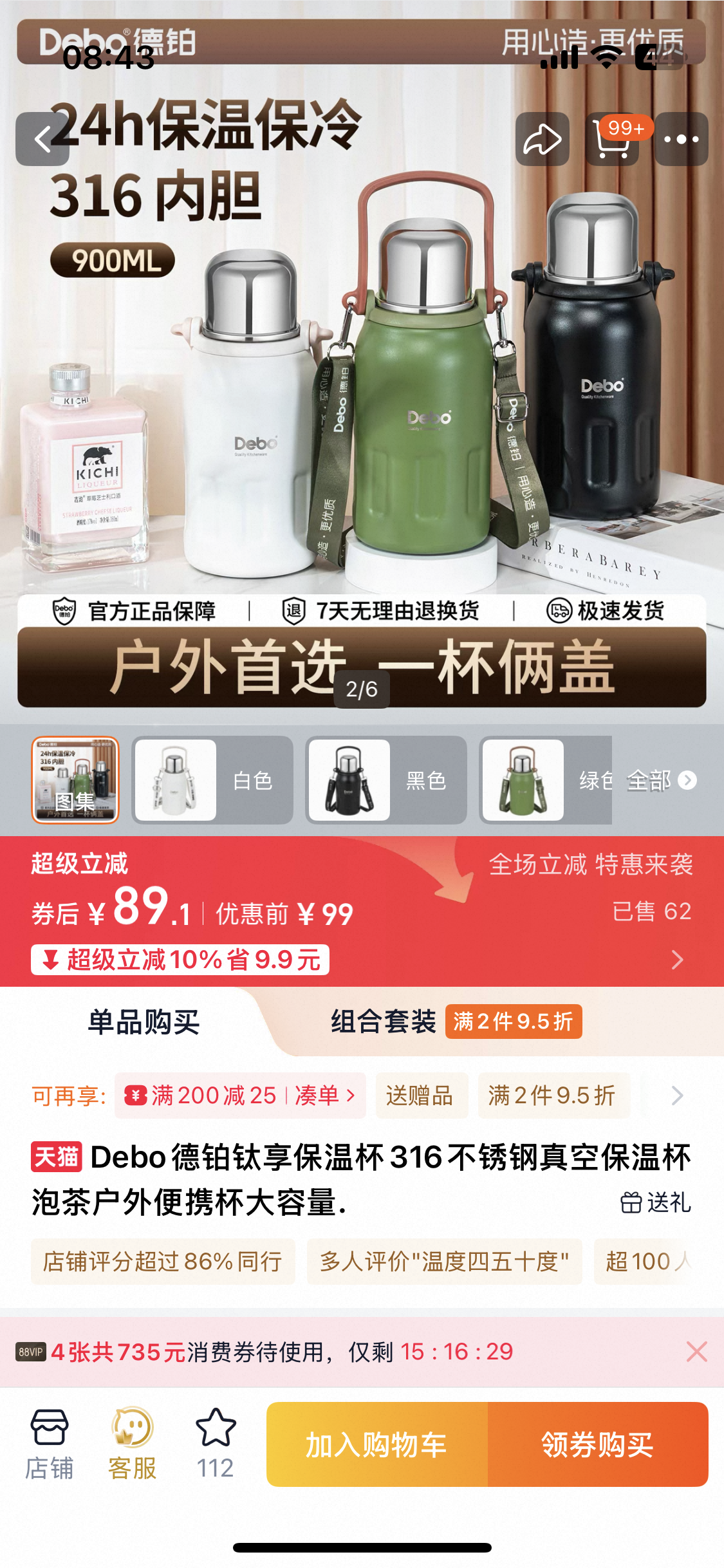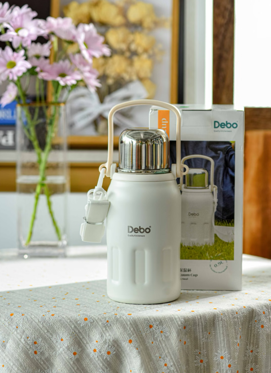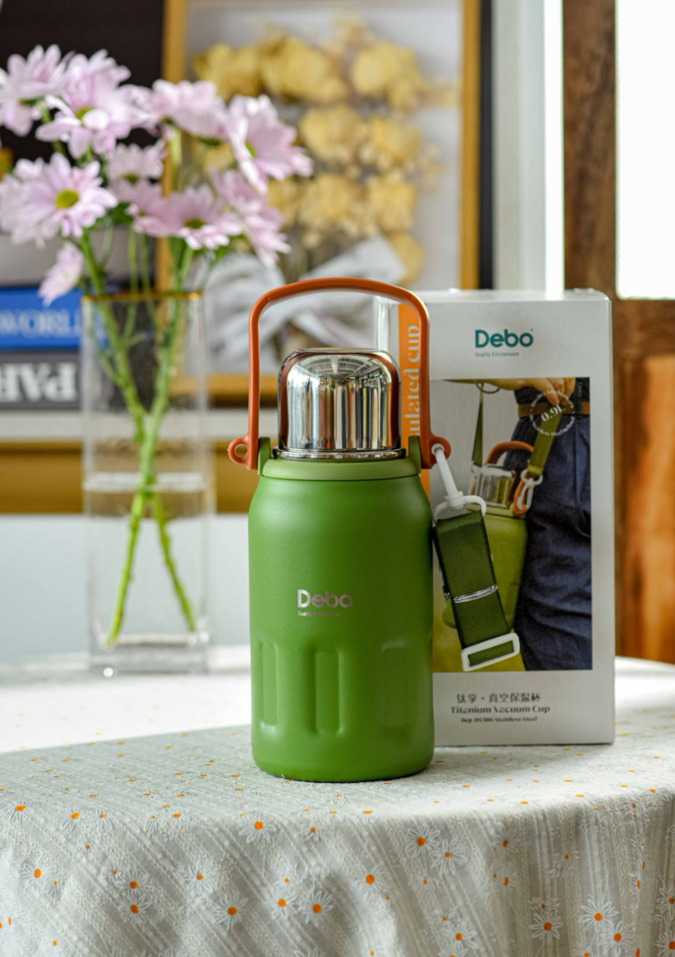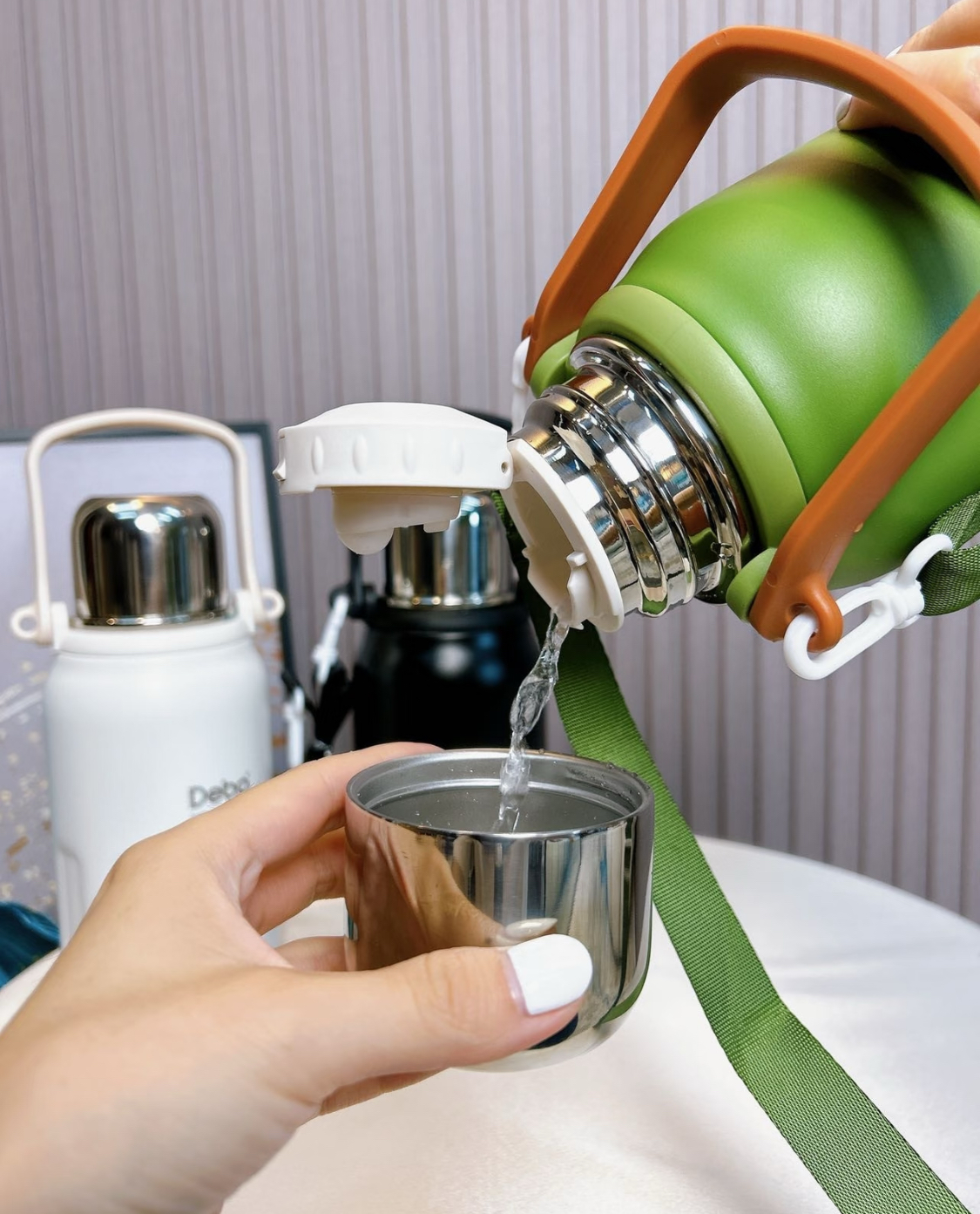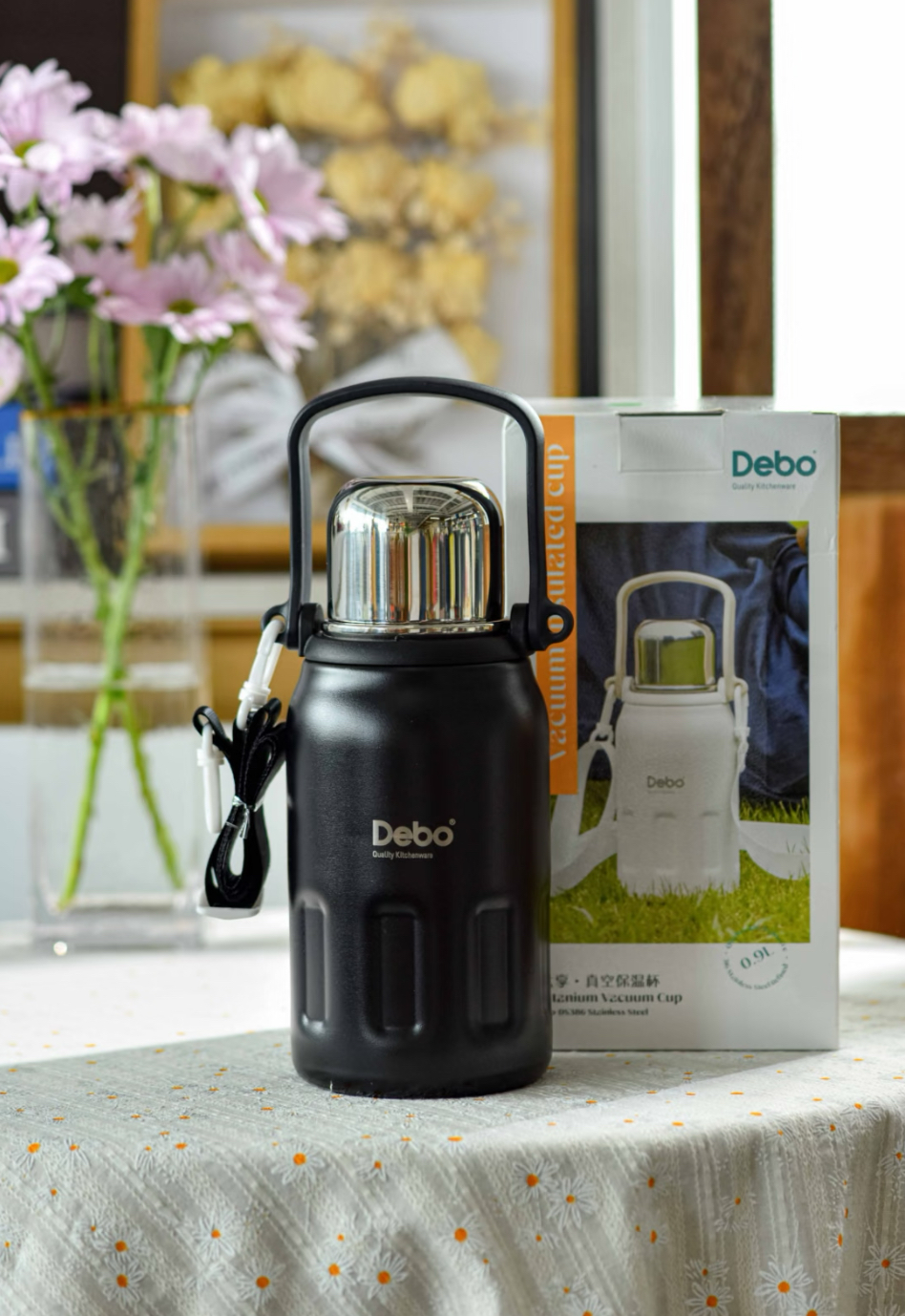 老米优品/ 德铂Debo 钵享保温杯 900ml大容量 316不锈钢内胆 7层锁温 24小时长效保温保冷 自带过滤网 可拆卸背带 3色可选