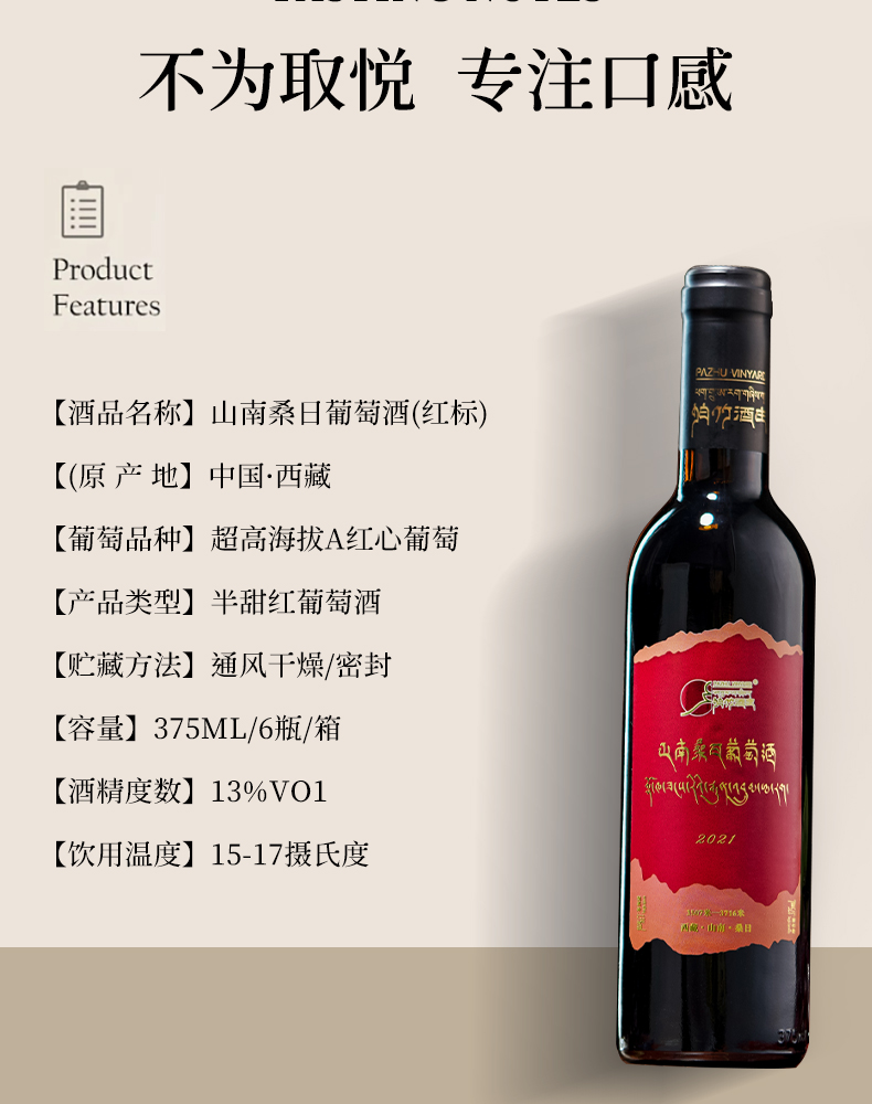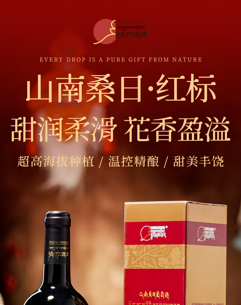 自营(帕竹)-西藏帕竹酒庄帕竹红标半甜型红葡萄酒单支 聚会 送礼 微醺