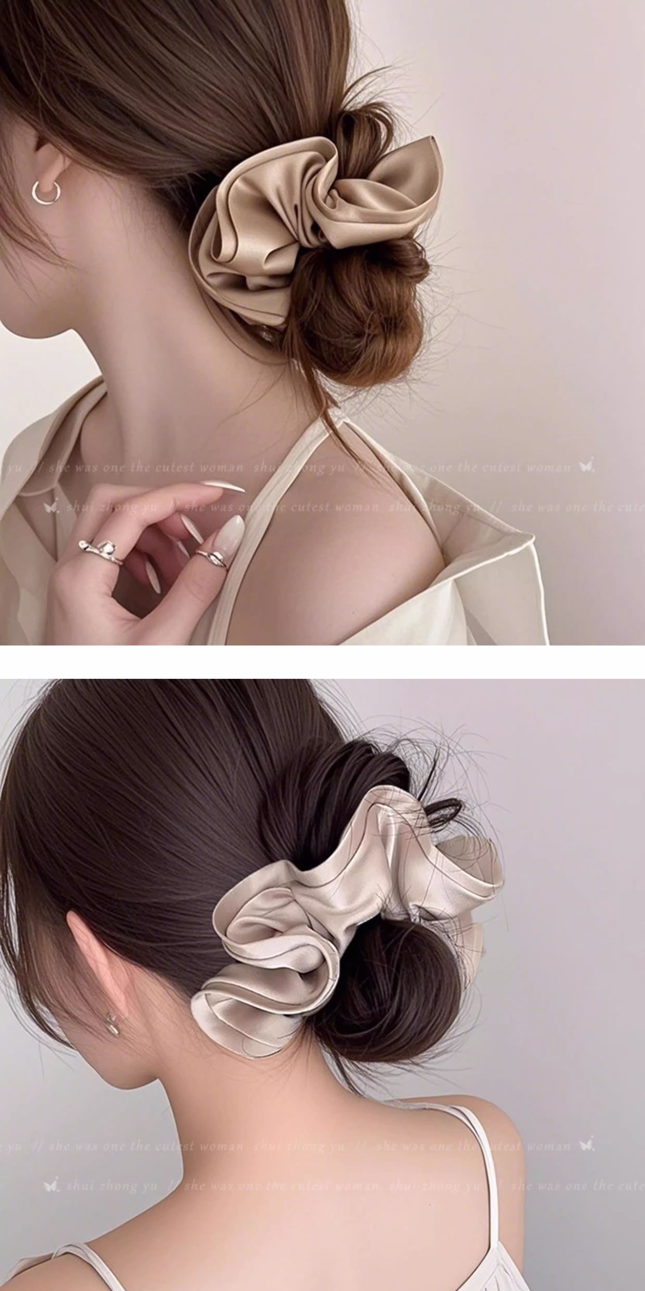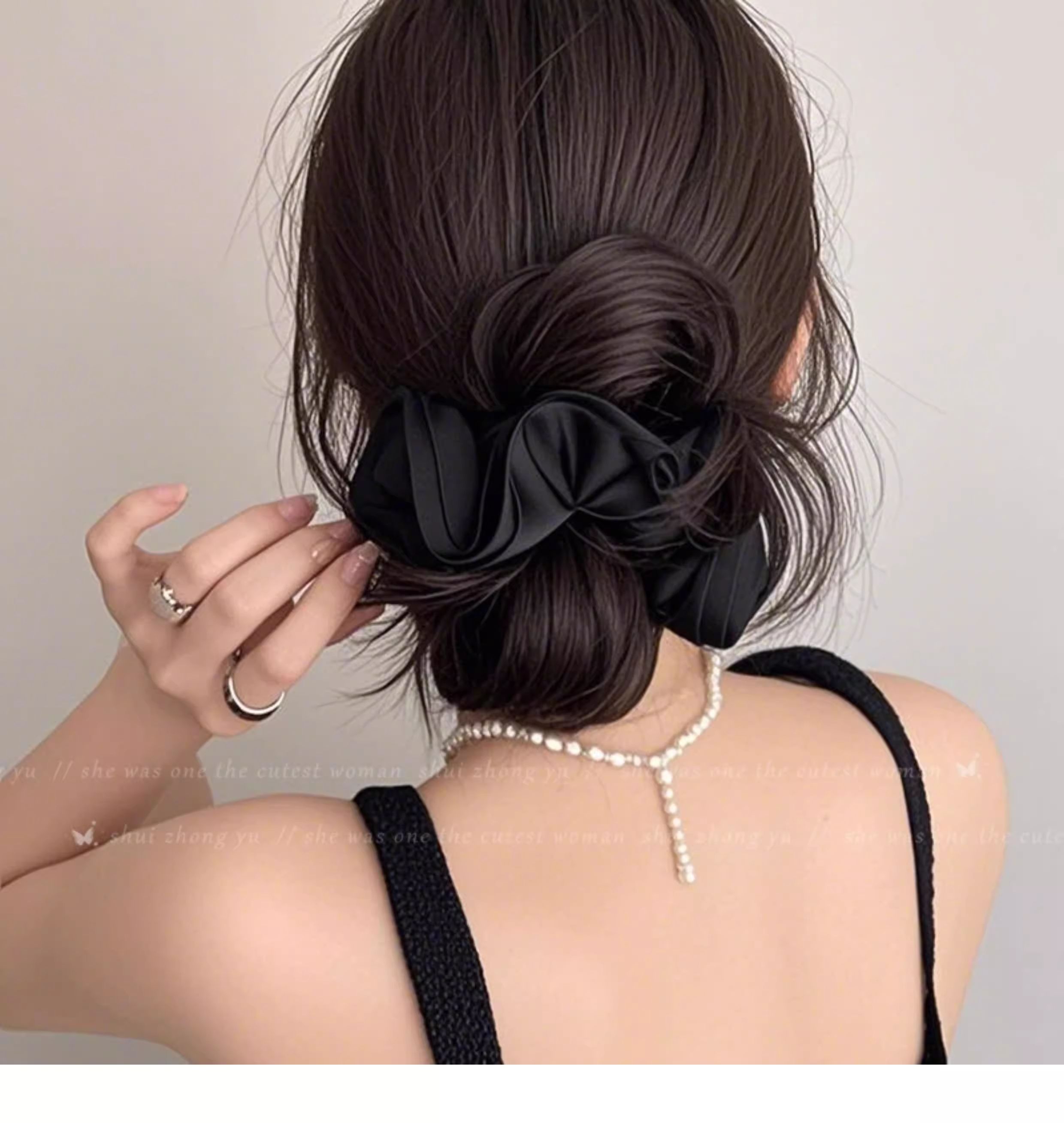 2026年赵露思同款木新年耳边大肠发圈女红色缎面丸子头发绳扎低马尾头绳皮筋★