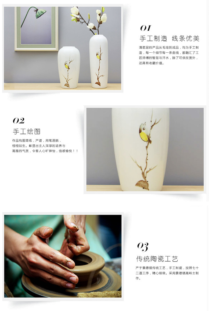 【陶瓷花瓶】陶瓷花瓶三件套 景德镇陶瓷工艺品家居装饰摆件