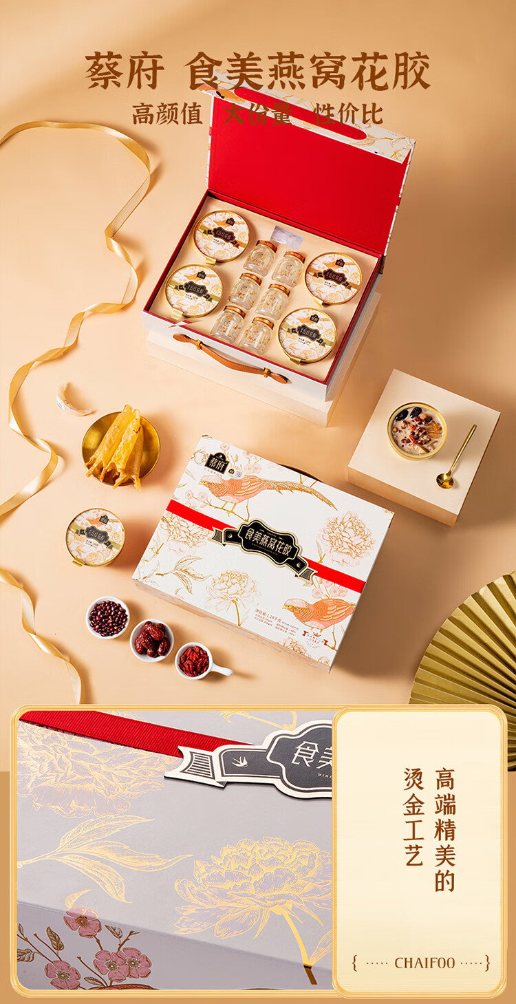 【一件包邮 传统滋补】蔡府食美燕窝花胶礼盒40g/瓶X6+250g/碗X4 燕窝+花胶组合轻奢礼盒 甘肃/青海/内蒙古/新疆/西藏/宁夏/海南/港澳台不发货