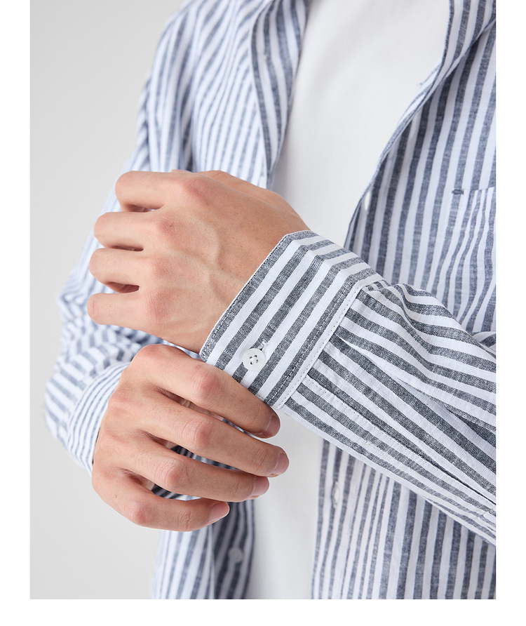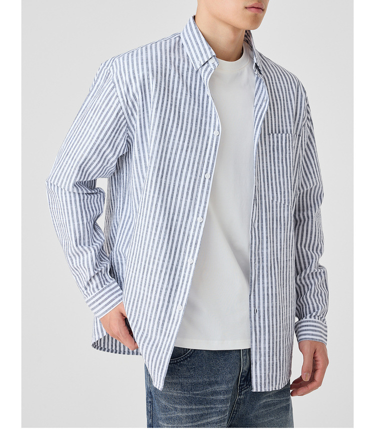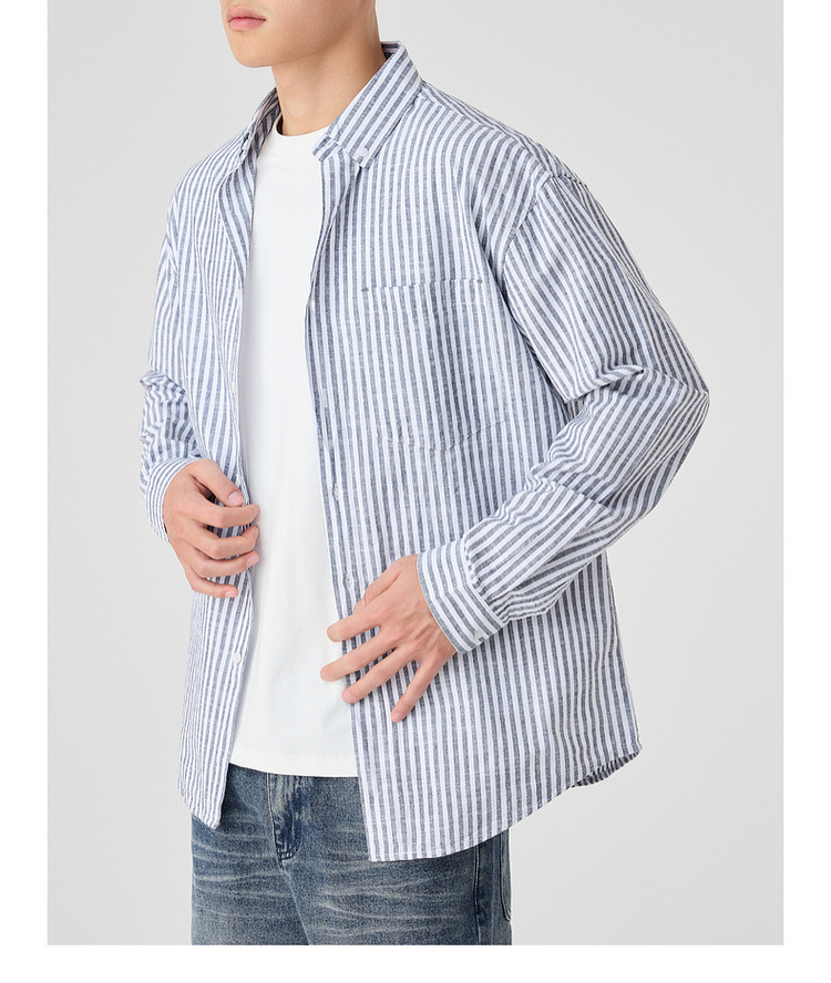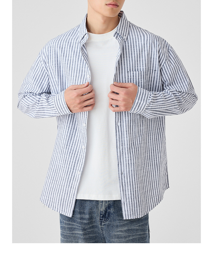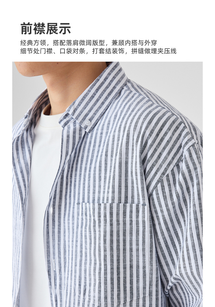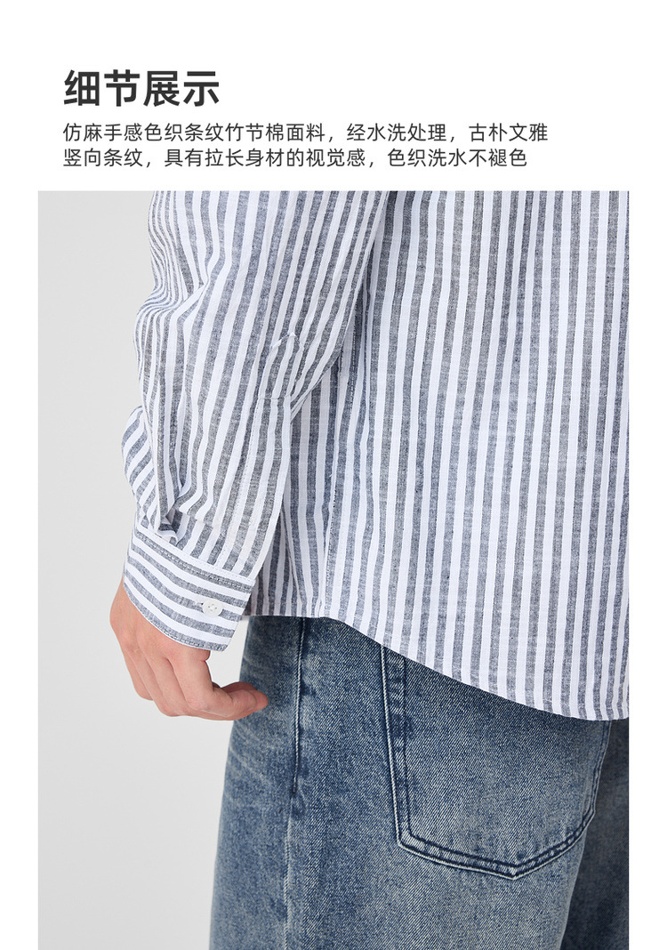 墨麦客男装条纹撞色衬衫男2025年春季新款全棉长袖男士衬衣50292.