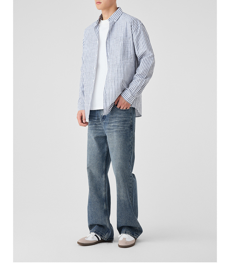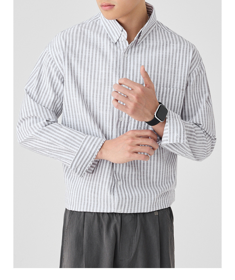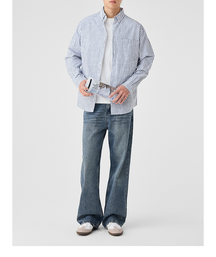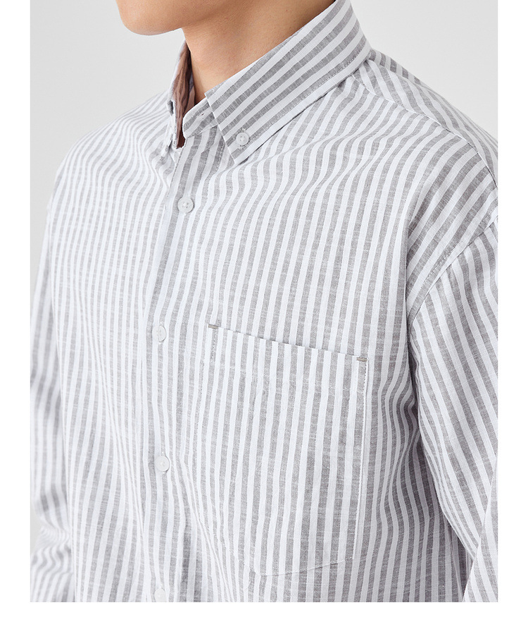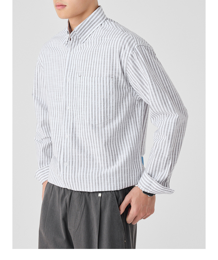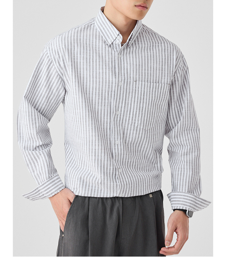 墨麦客男装条纹撞色衬衫男2025年春季新款全棉长袖男士衬衣50292.