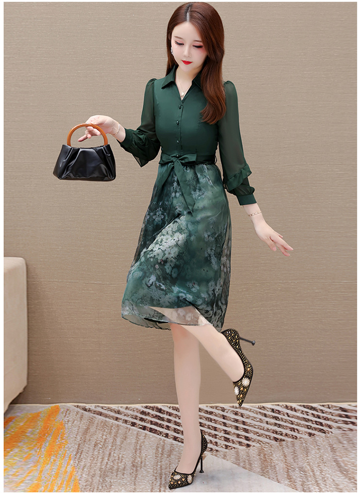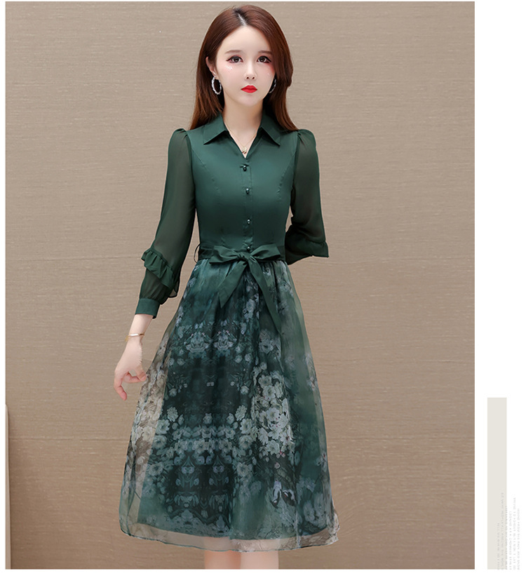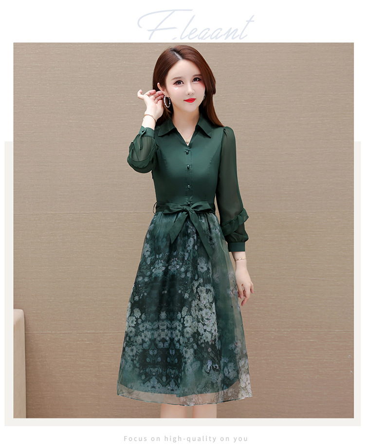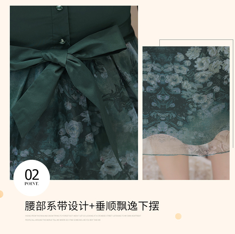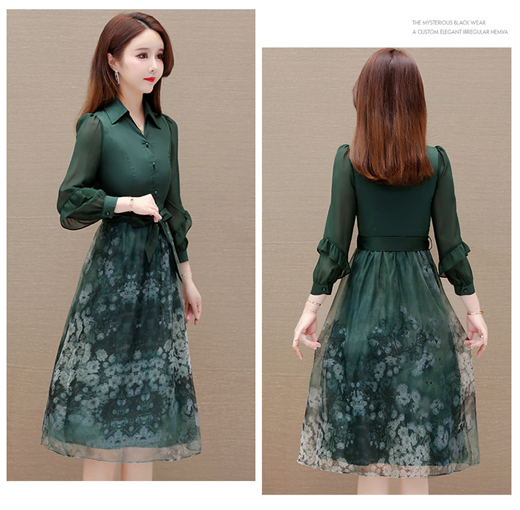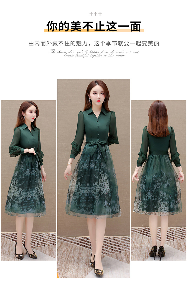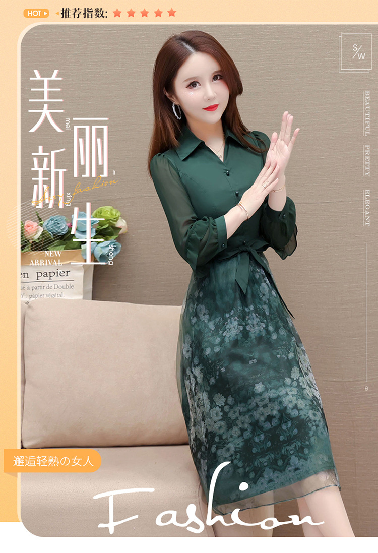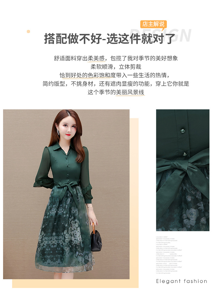 春季新款,假两件系带裙气质女装洋气印花网纱裙时尚连衣裙QYM-HL-23T181-Y