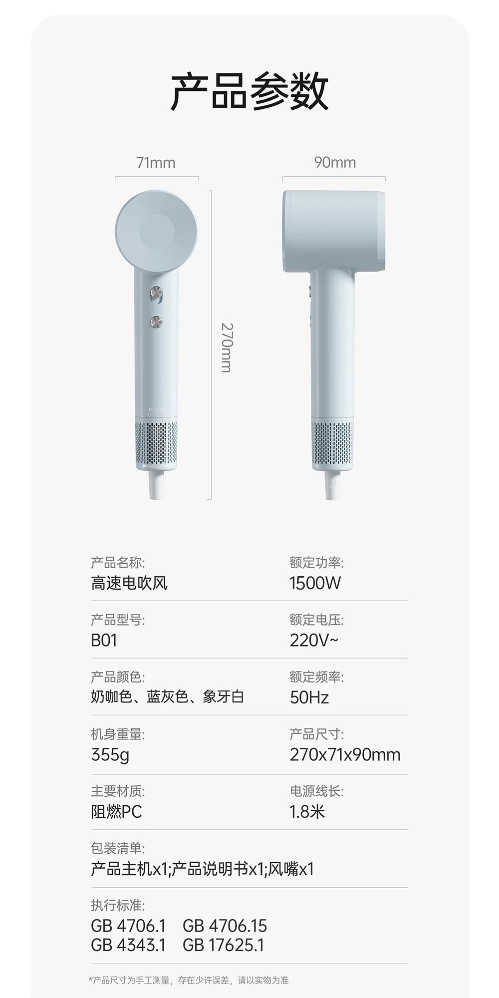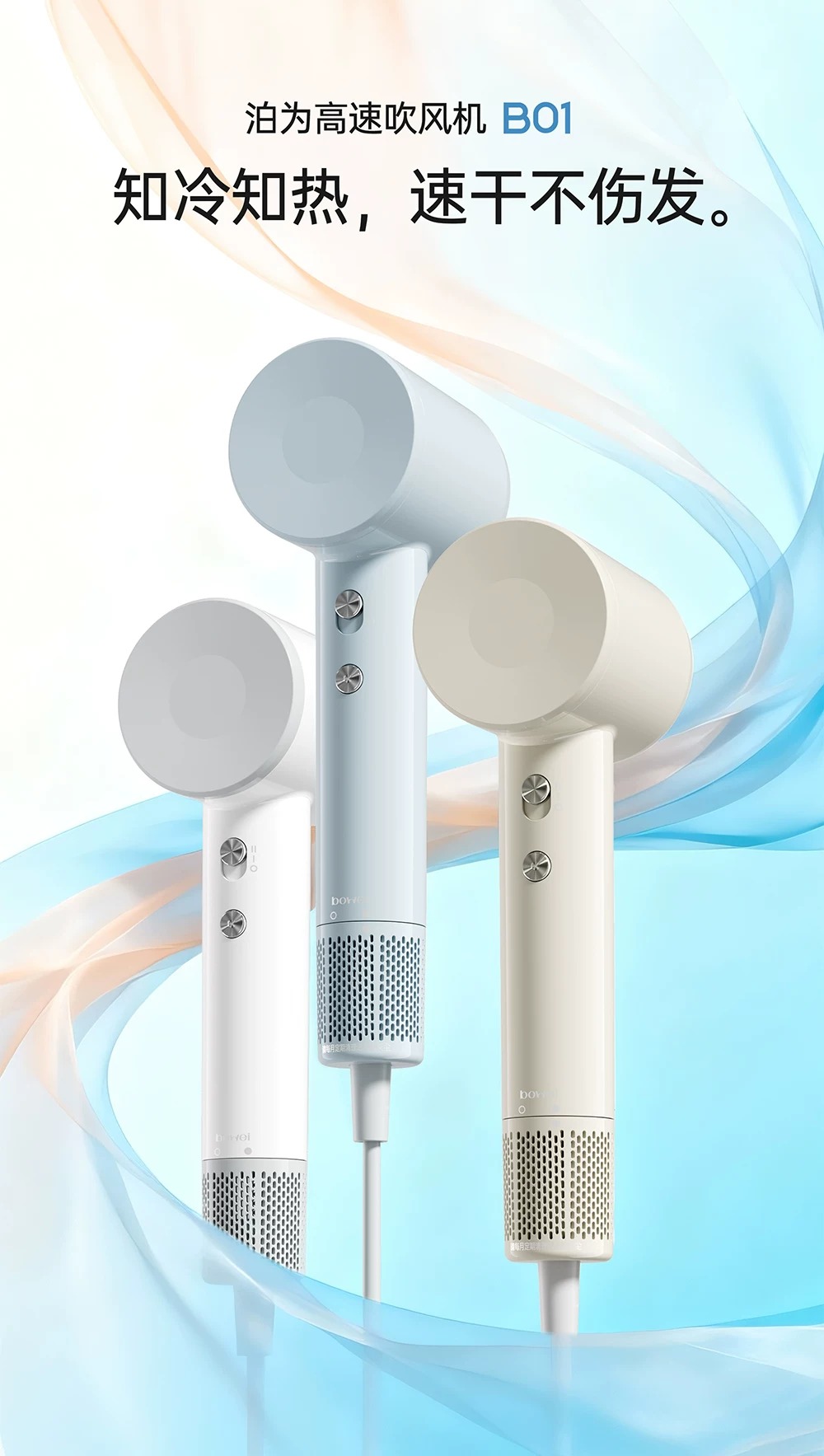 bowei泊为B01高速吹风机家用电吹风大风力速干负离子护发男女