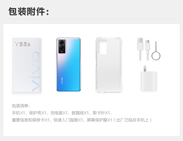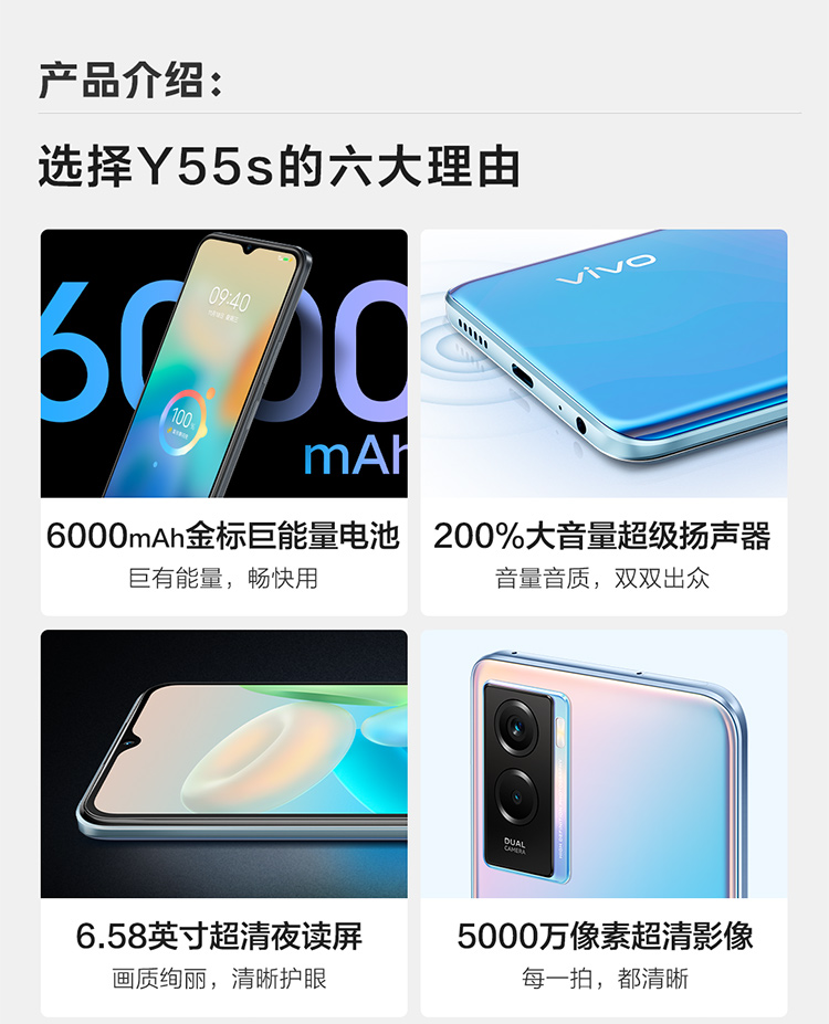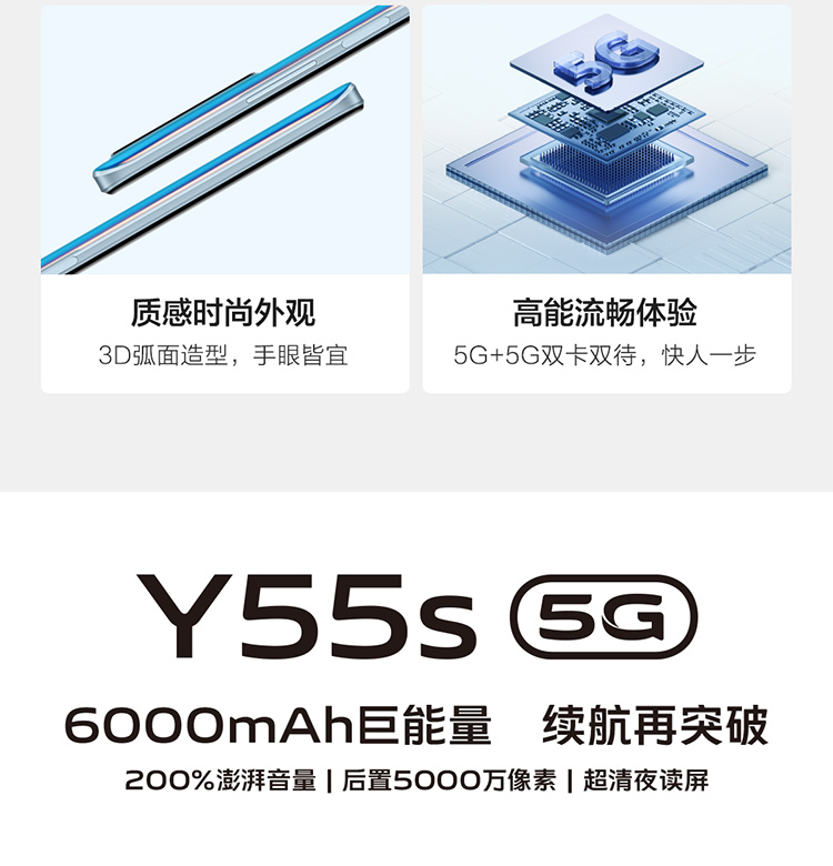 【品牌直发】vivo Y55s 5G手 6GB+128GB 镜湖蓝 6000mAh巨能量电池 200%超大音量扬声器