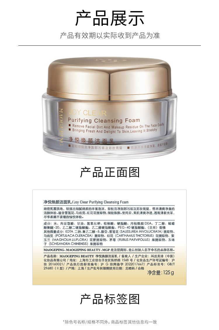 毛戈平净悦焕颜深层洁面乳125g 滋润养肤控油保湿清爽清洁面部