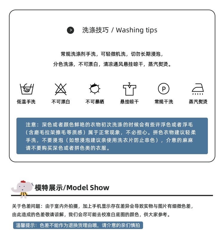 2. 严选天然精梳棉面料,95棉%+5氨纶%,植萃活性印染,面料都是A级标准,严选天然面料;几乎所有棉花都有四不原则:不使用转基因种子、不使用杀虫剂和化肥、不使用枯叶剂、不含致敏源。