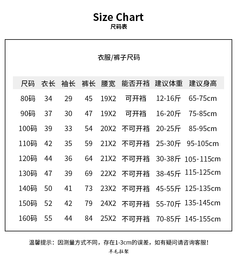 1.80-160码可选,覆盖小童 、中童和大童尺寸具体尺码如下: