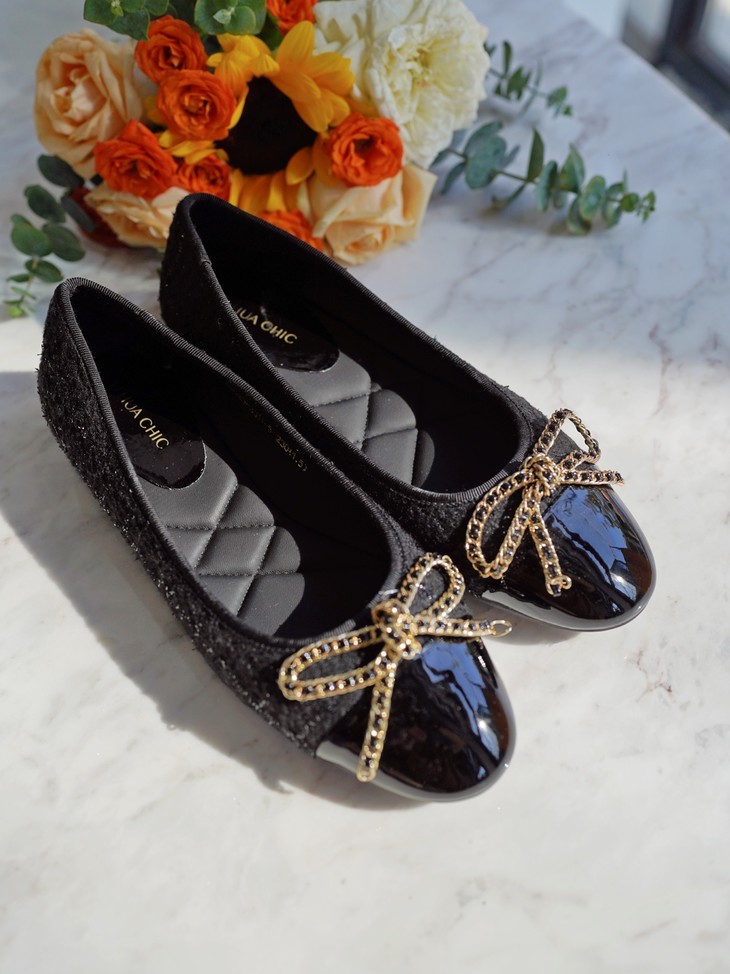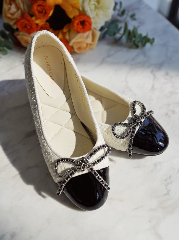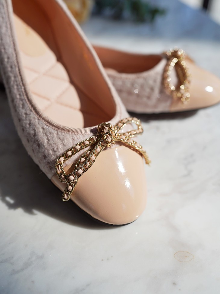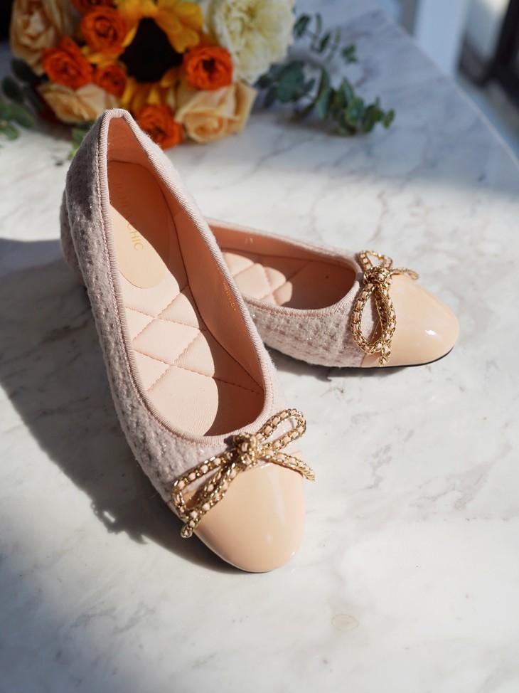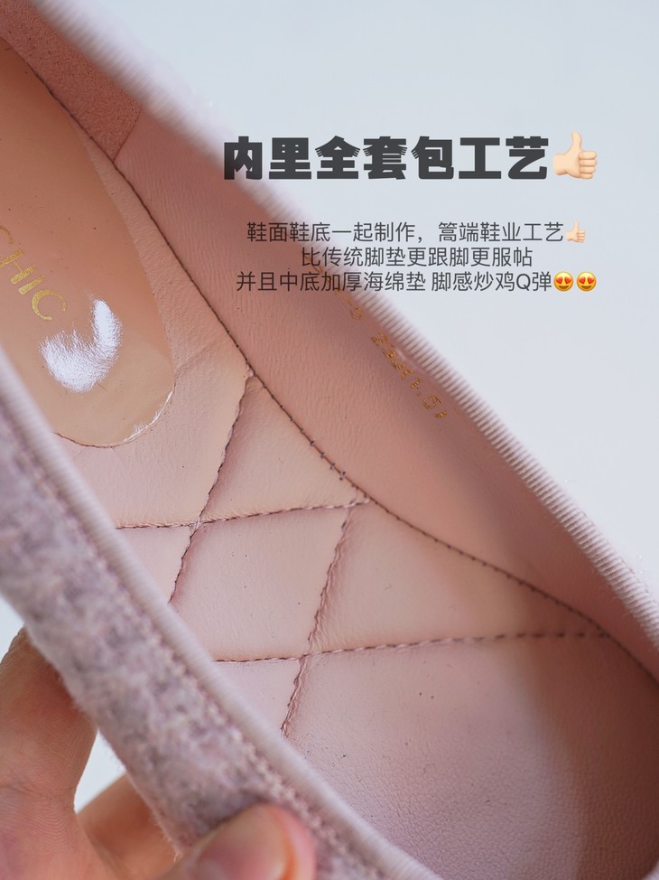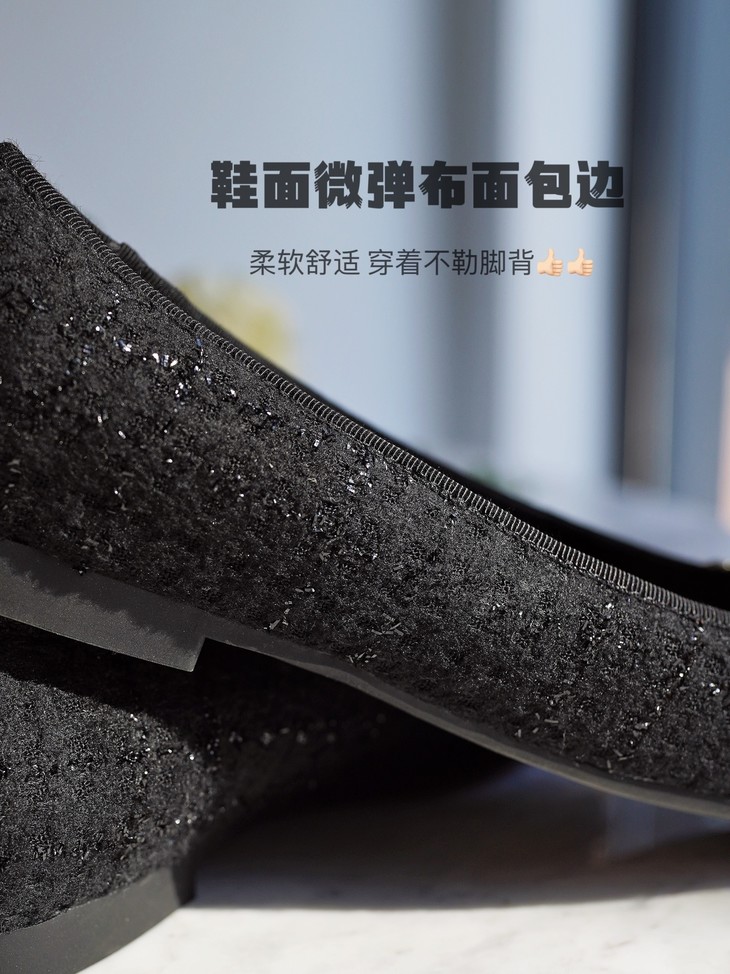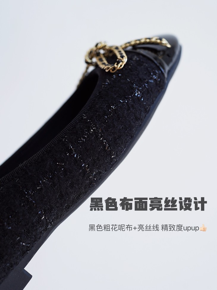 今天我给大家分享一双小香风粗花呢的芭蕾鞋,其实芭蕾舞鞋呢在整个西方时装史上,几十年以来都是占了一个非常重要的地位,大家可以看到非常多的明星、博主,包括一些好莱坞的经典的一些女明星,她们在私下,都会穿很多这样子鞋型去搭配,这个鞋也是在整个的鞋的历史上也是非常经典的一双鞋了,一双一眼看得见品质与质感的小香风平跟单鞋!