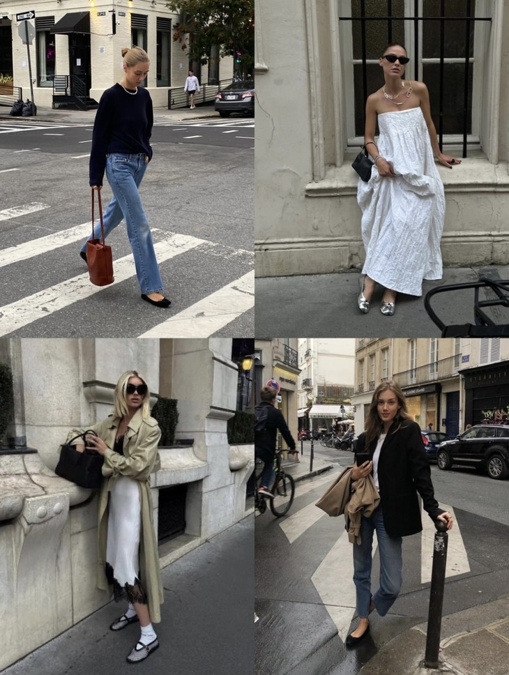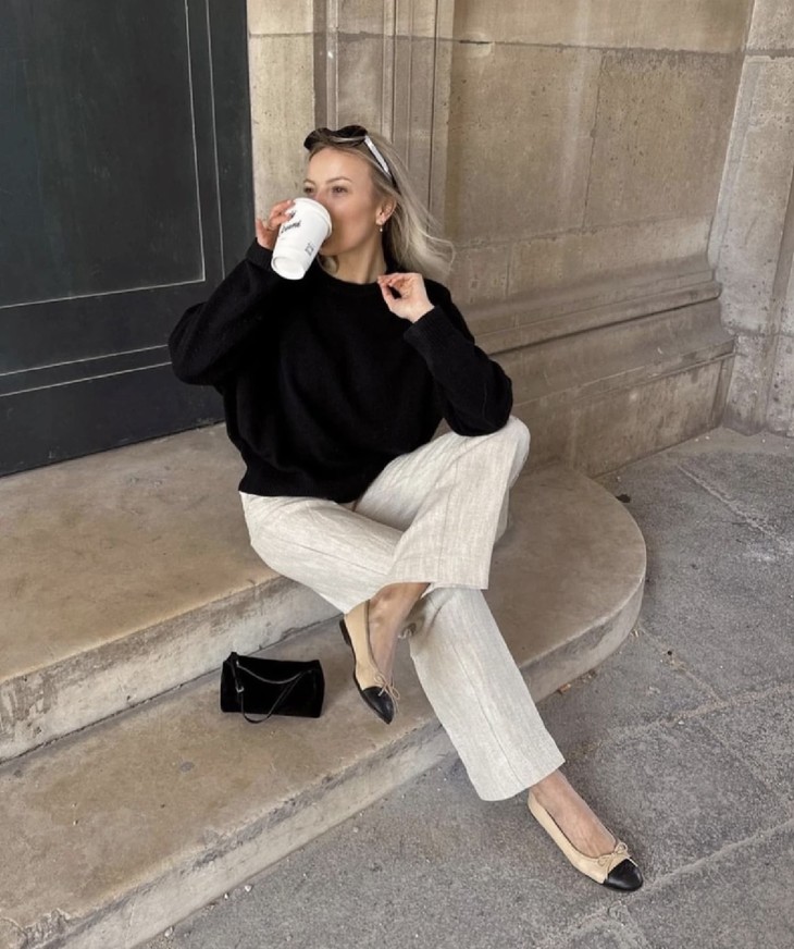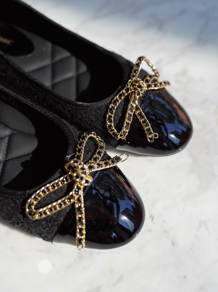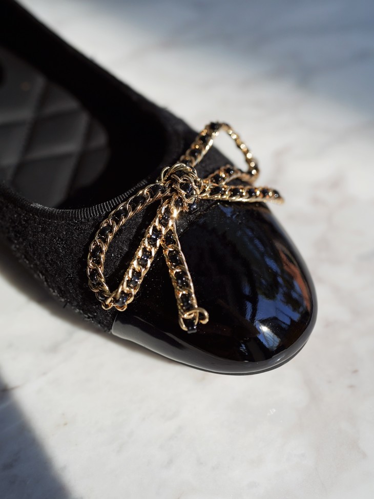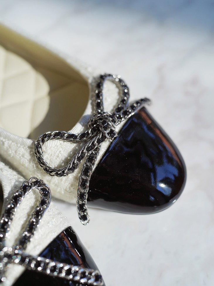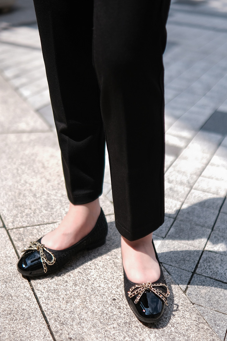 「芭蕾平底鞋」让时髦精念念不忘的原因,就在于它的百搭性,小香风粗花呢的材质与漆皮的拼接碰撞,既能平衡秋冬大衣的厚重感,也能融合于休闲率性的单品,将盐系穿搭的微甜感刚好拿捏。