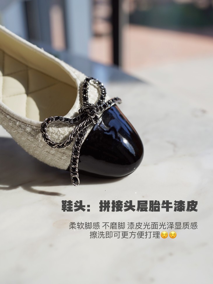 时髦精念念不忘的「芭蕾平底鞋」小香风粗花呢单鞋,鞋面粗花呢+胎牛漆皮拼接,垫脚加厚羊皮套包工艺,Q弹柔软踩s感,兼具优雅与休闲舒适,防滑好走!(少量现货)