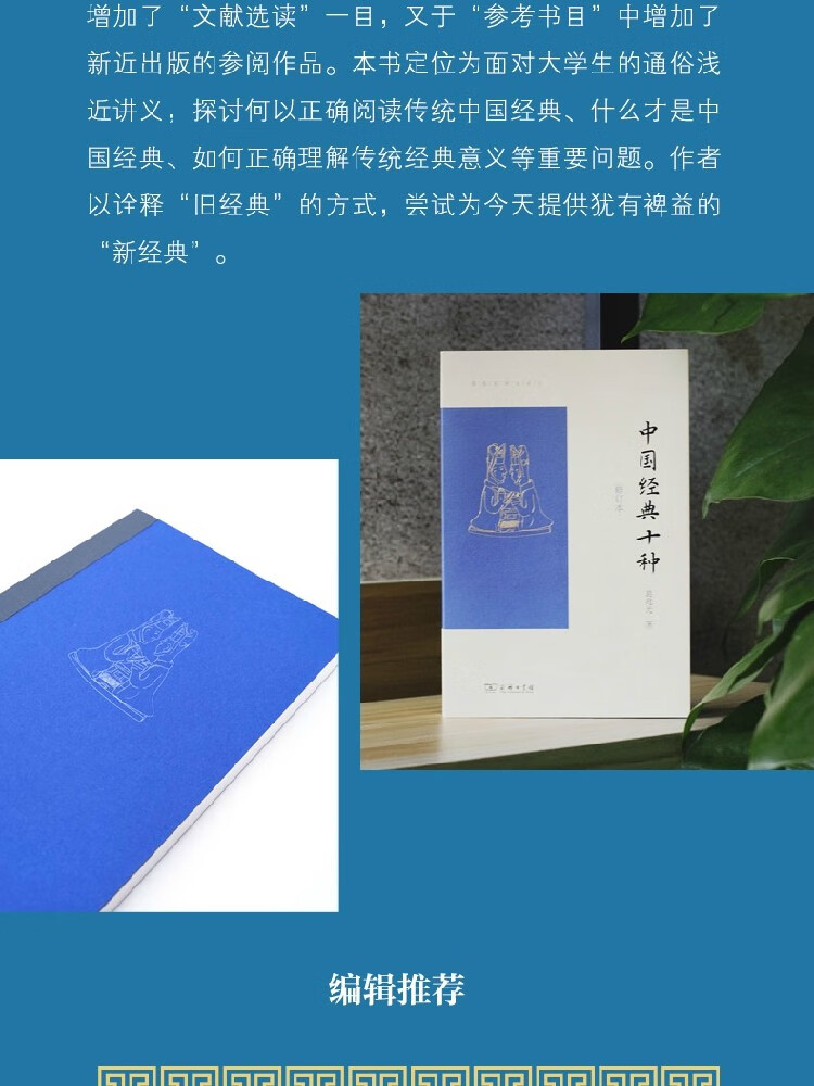 古人云:经,常也;典,大册也。一般认为,经典乃万世不易之作;甚至不少人将“中国经典”狭隘地解释为儒家圣贤之作。然葛兆光先生指出,中国经典,当不限于儒家治世之作,还应涵括佛教治心之作、道教治身之作,且如历史学之典范,文字学之瑰宝,林林种种,诸子百家,皆属中国之经典。