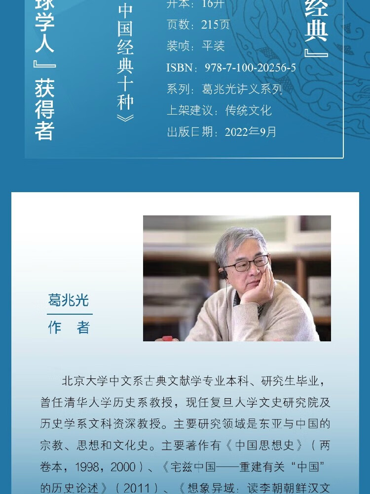 “葛兆光讲义系列”为葛兆光先生从教以来给学生们开授多门课程的讲义结集,均历其十多年之反复修订,其中既有关于古代中国文化的地图、古代中国的经典,征引广博,不同于掇拾浮华;亦有关于学术研究的方法和思考,研思深厚,尤其有裨益于后学。此系列可为读者之锁钥,使其在习得传统文化知识时,亦可一窥学术研究之门径。