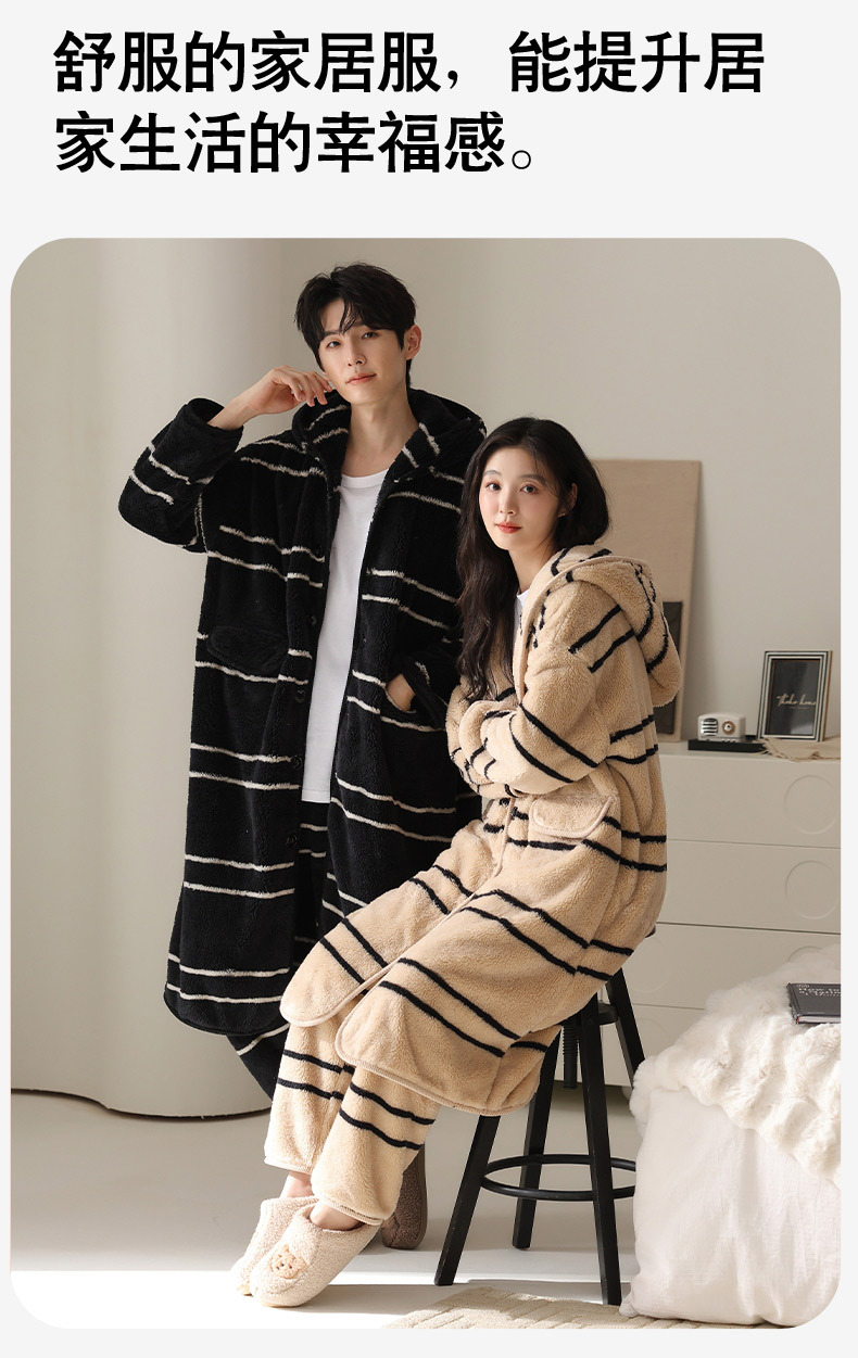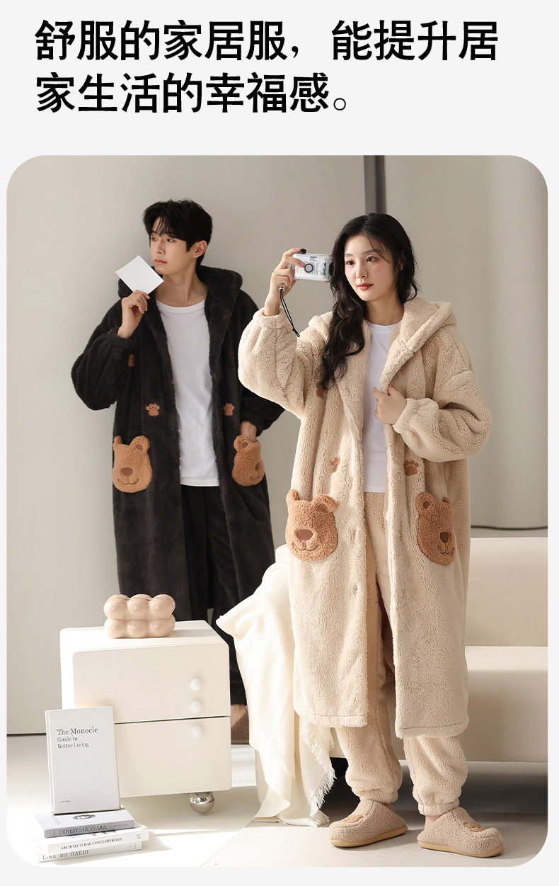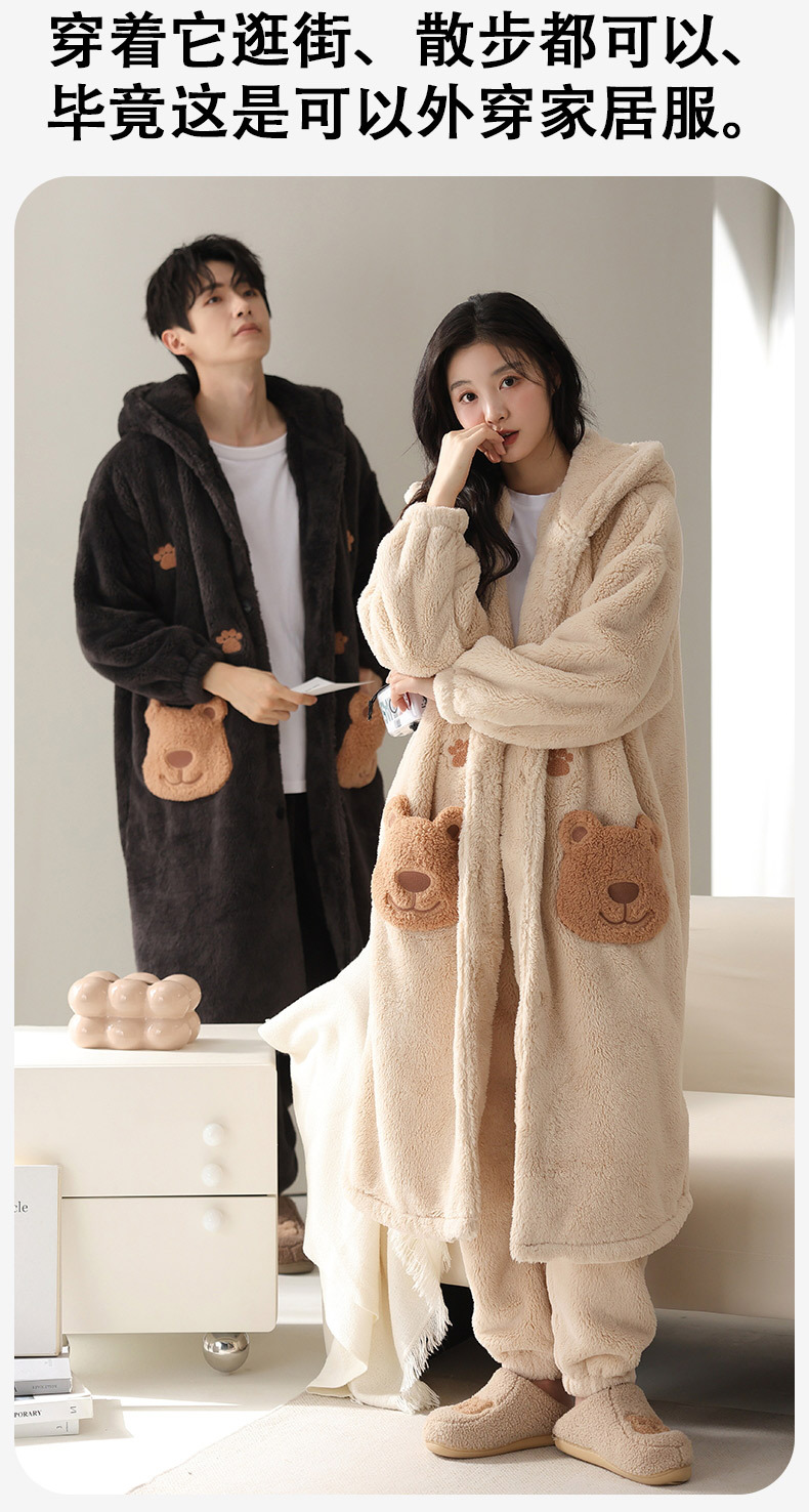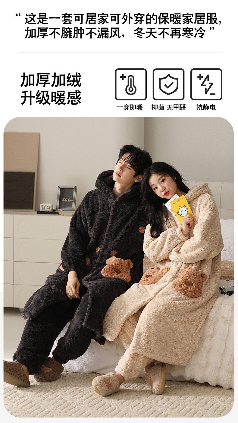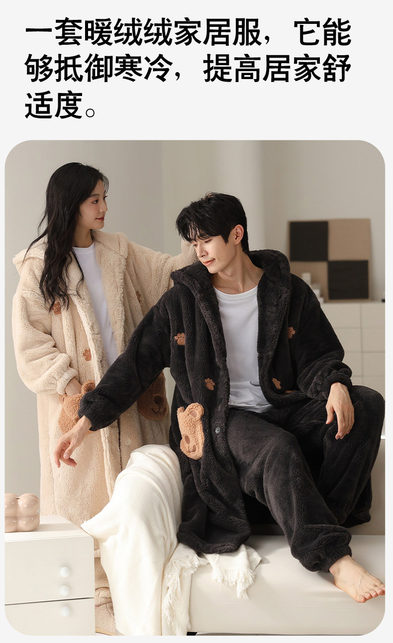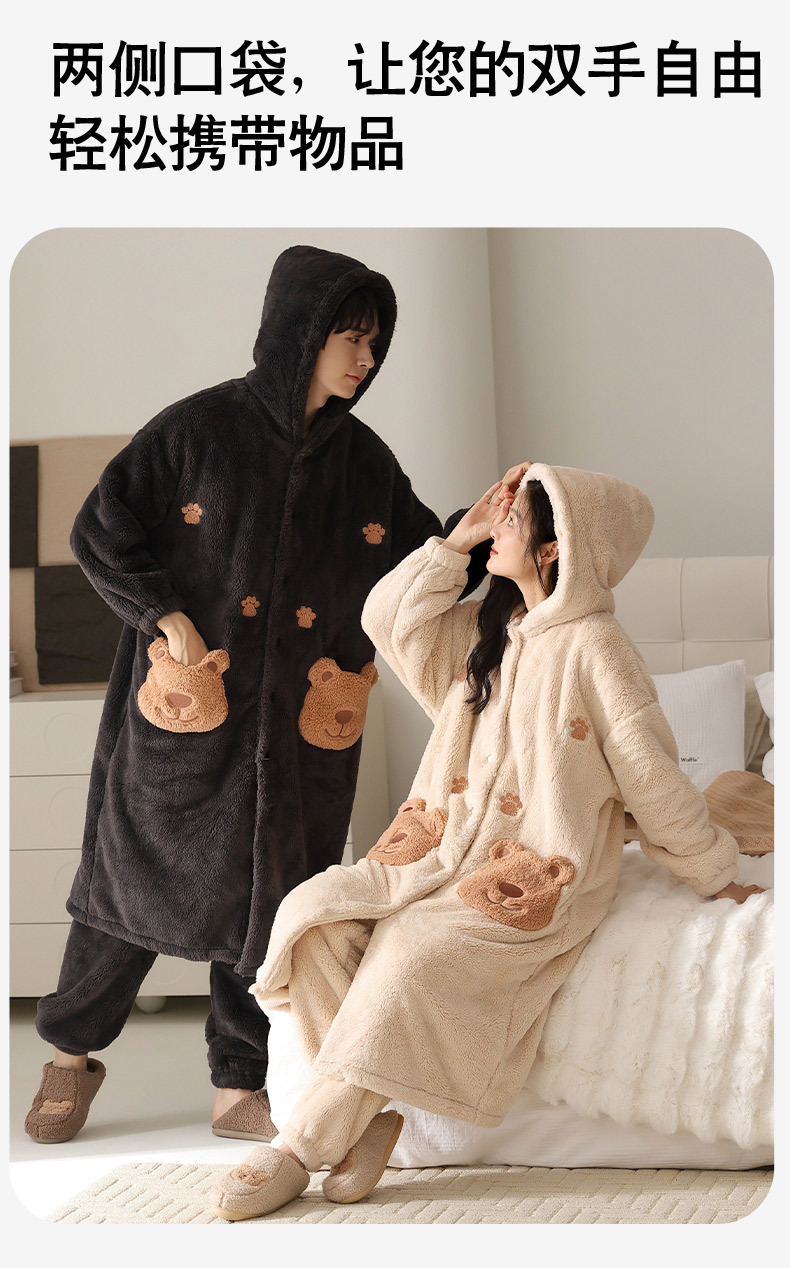 冬季情侣连帽睡袍套装 甜美可爱男女款珊瑚绒家居服保暖睡衣套装