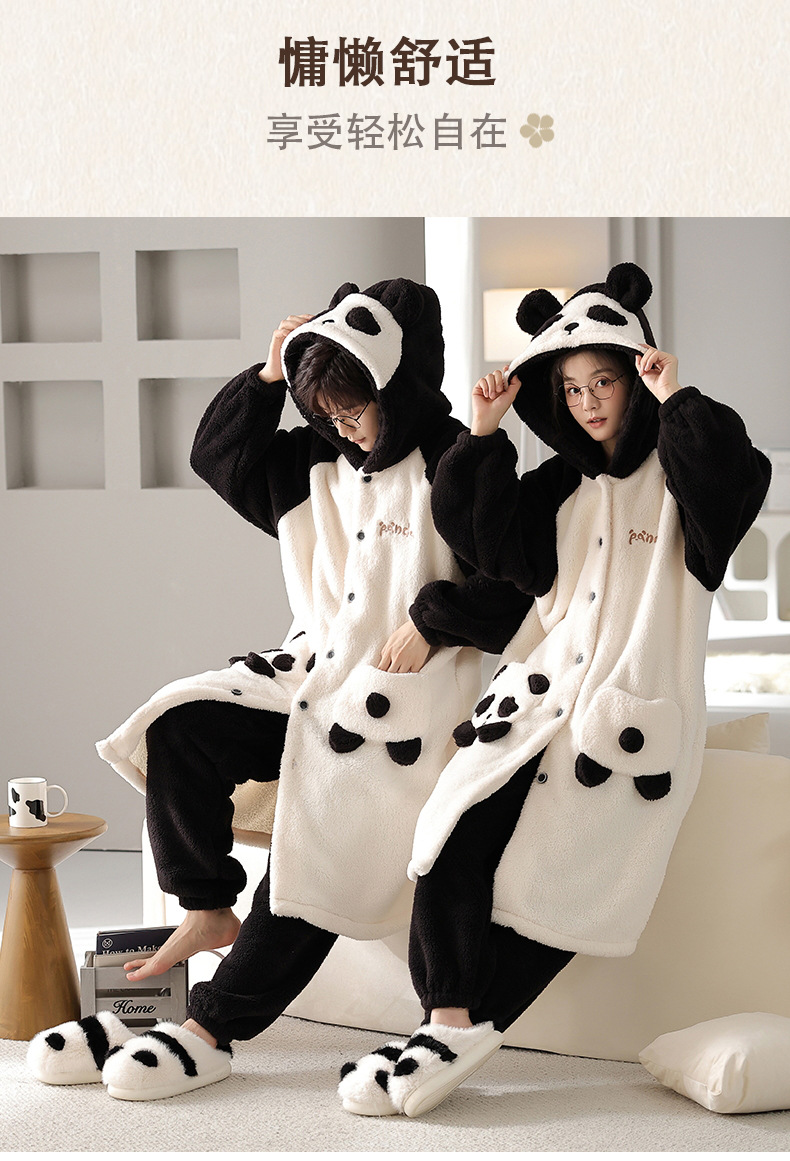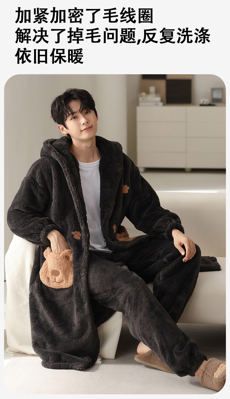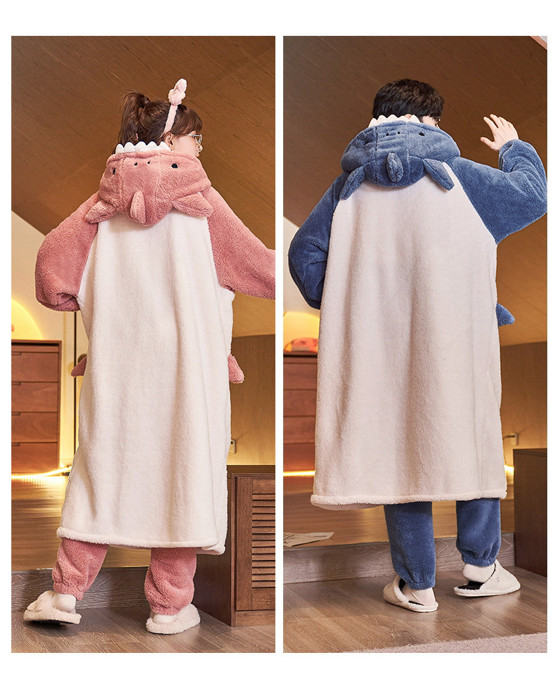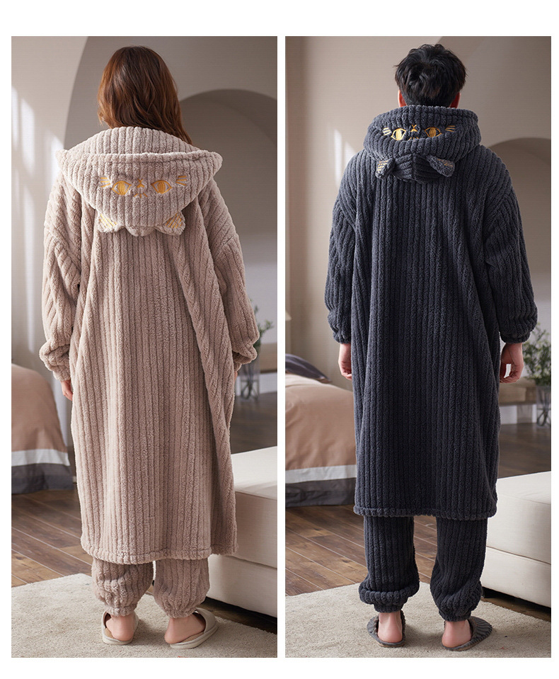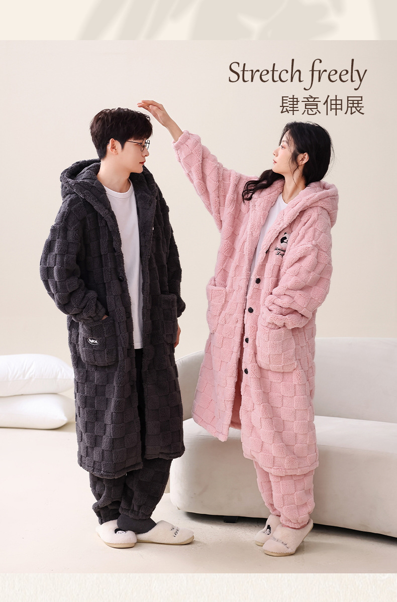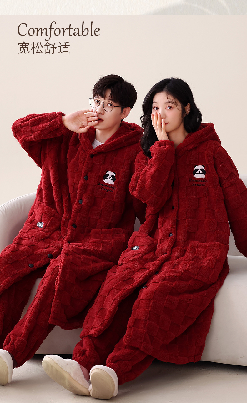 冬季情侣连帽睡袍套装 甜美可爱男女款珊瑚绒家居服保暖睡衣套装
