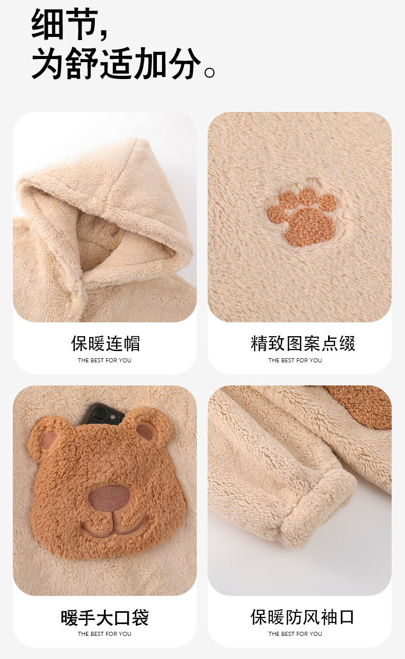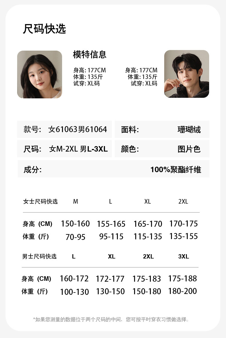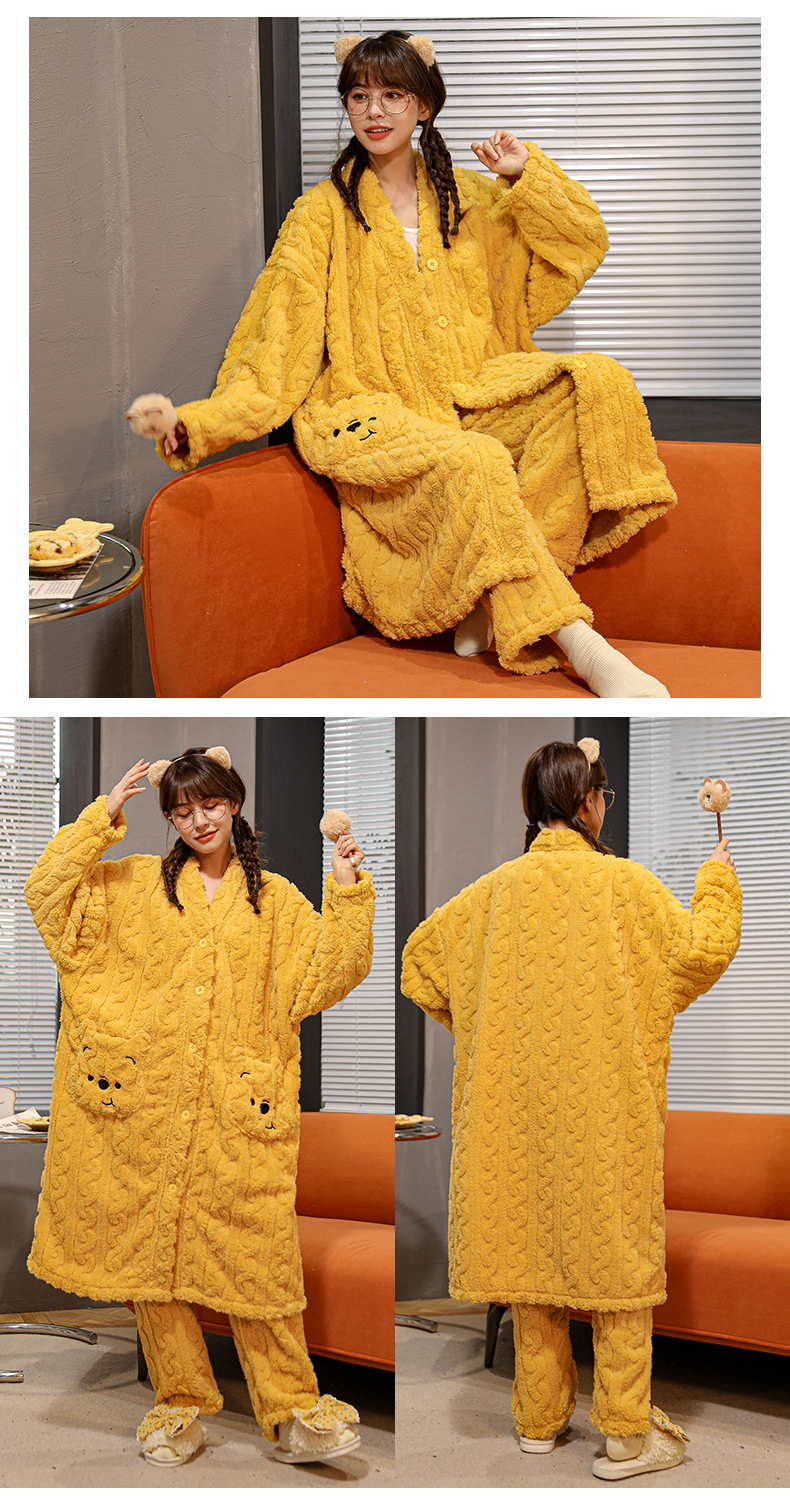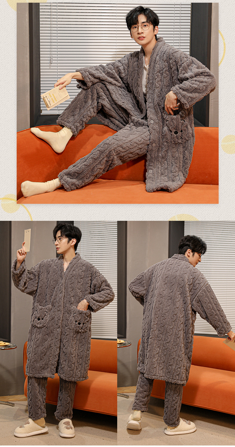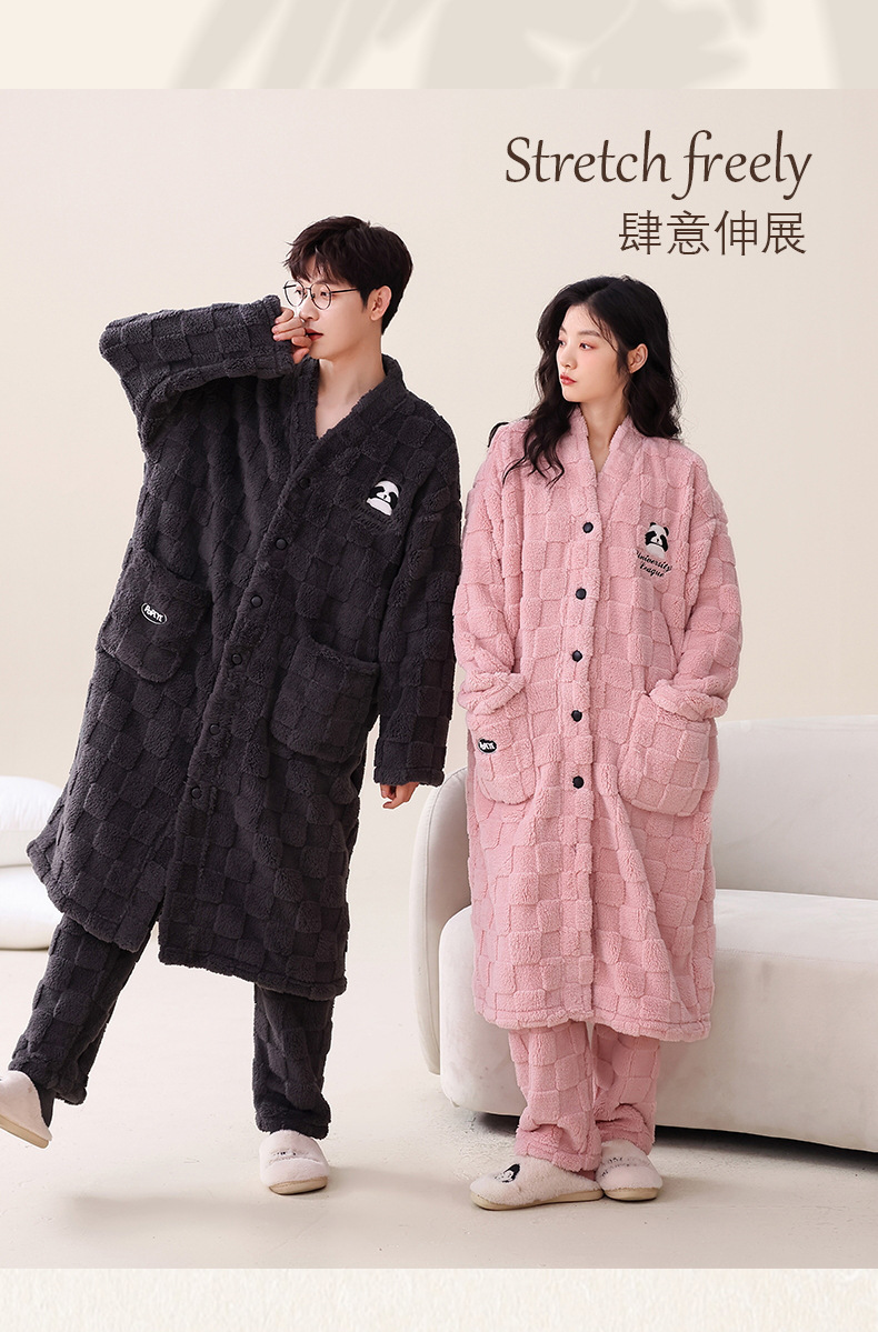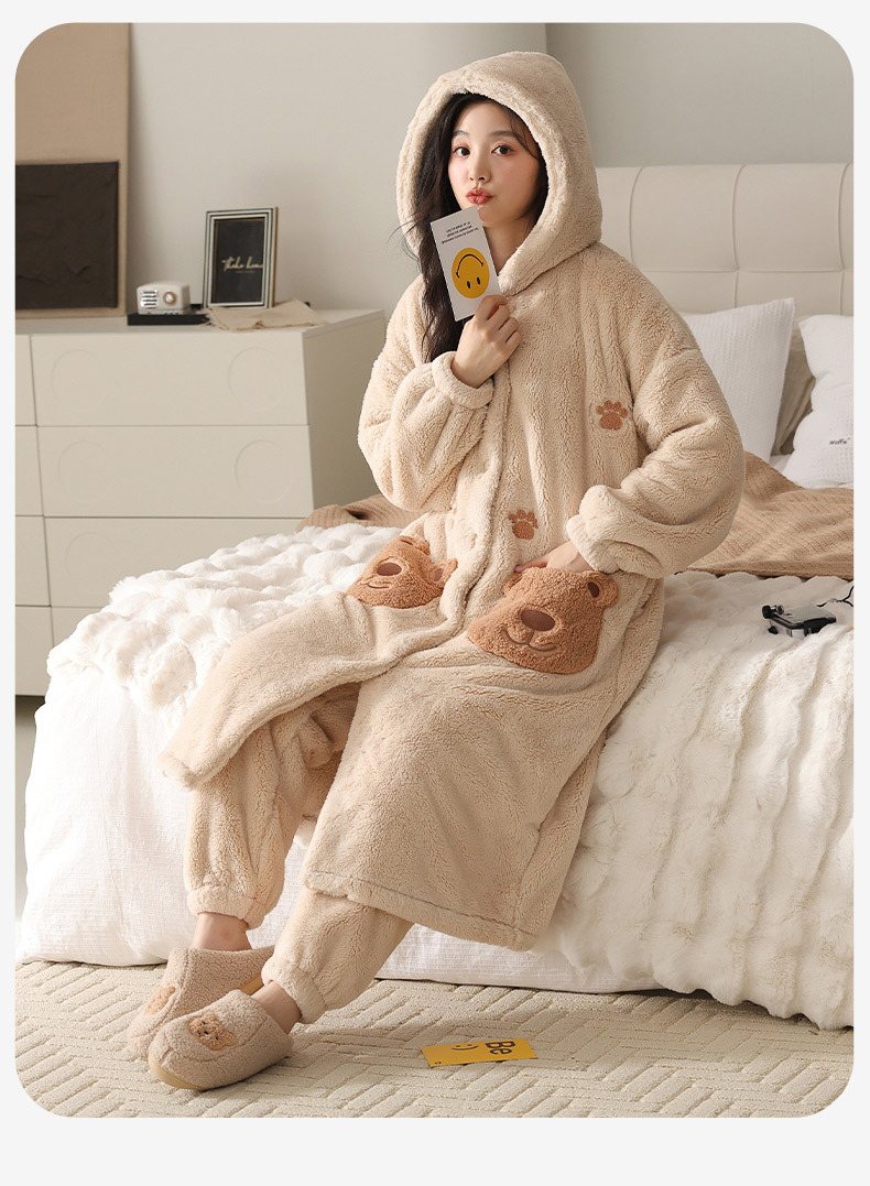 冬季情侣连帽睡袍套装 甜美可爱男女款珊瑚绒家居服保暖睡衣套装
