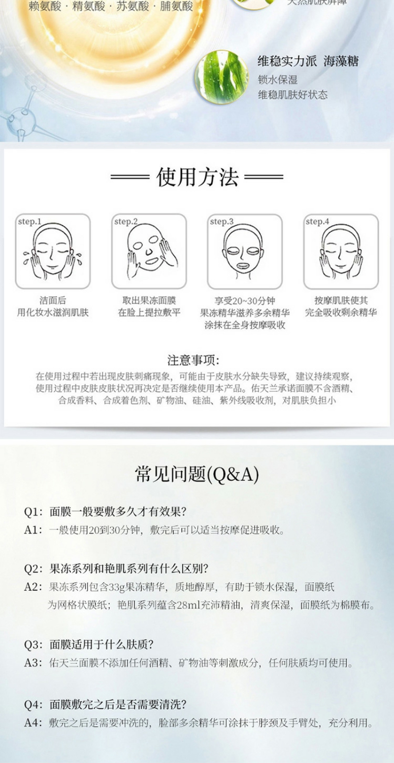 【YZ】佑天兰黄金果冻面膜补水保湿弹润紧致面膜贴玻尿酸3片/盒