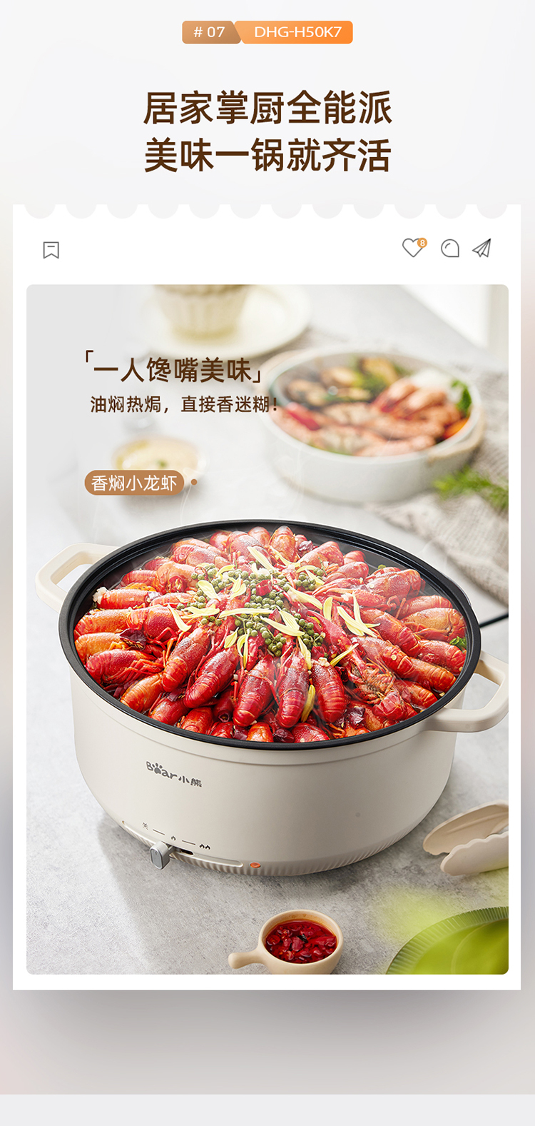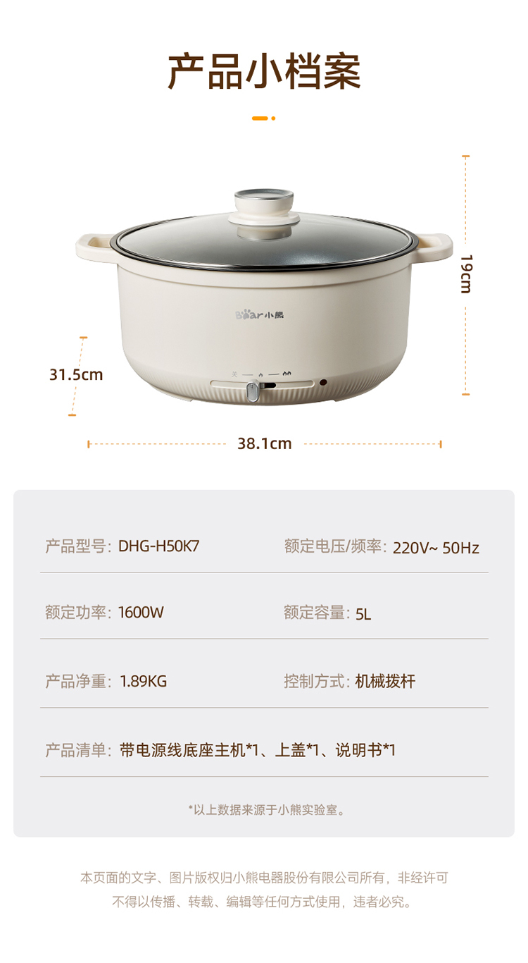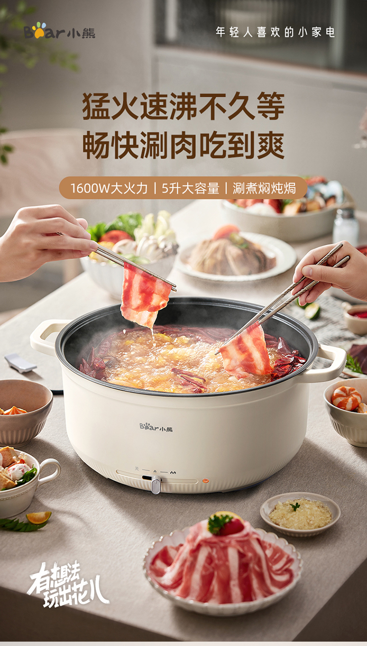 小熊(Bear)电火锅多用途锅电煮锅多功能锅家用电热锅火锅DHG-H50K7