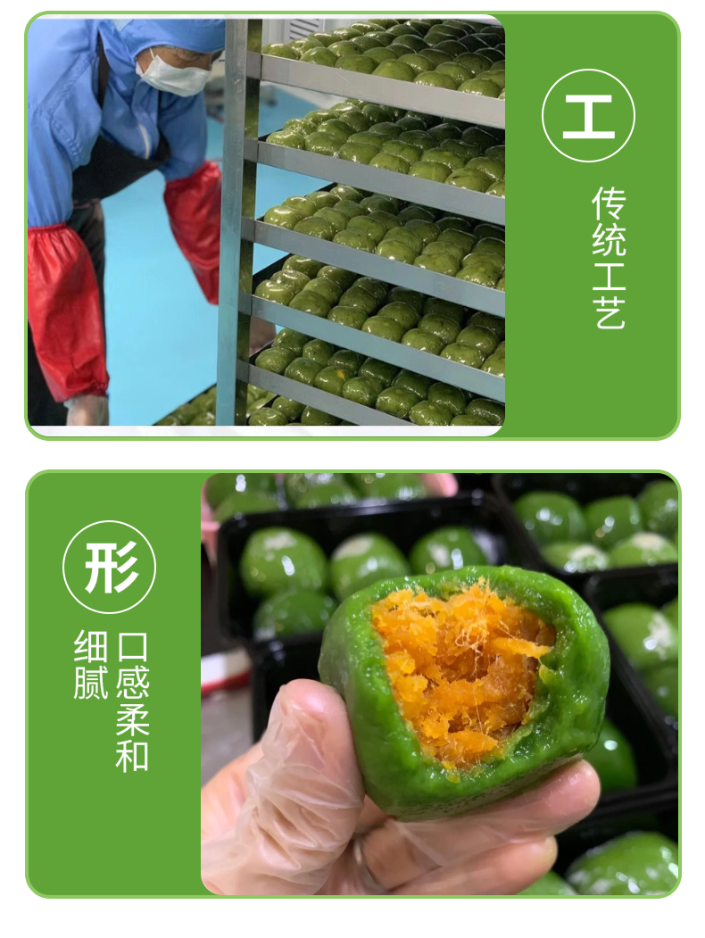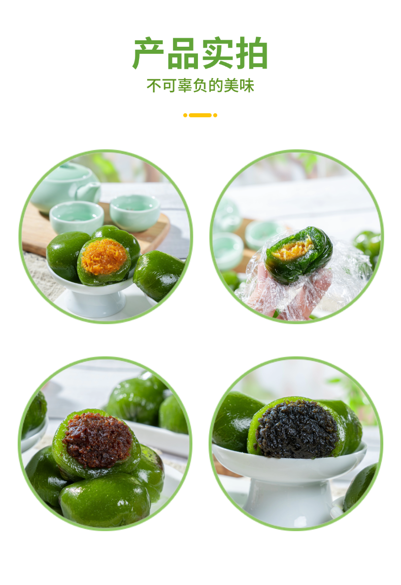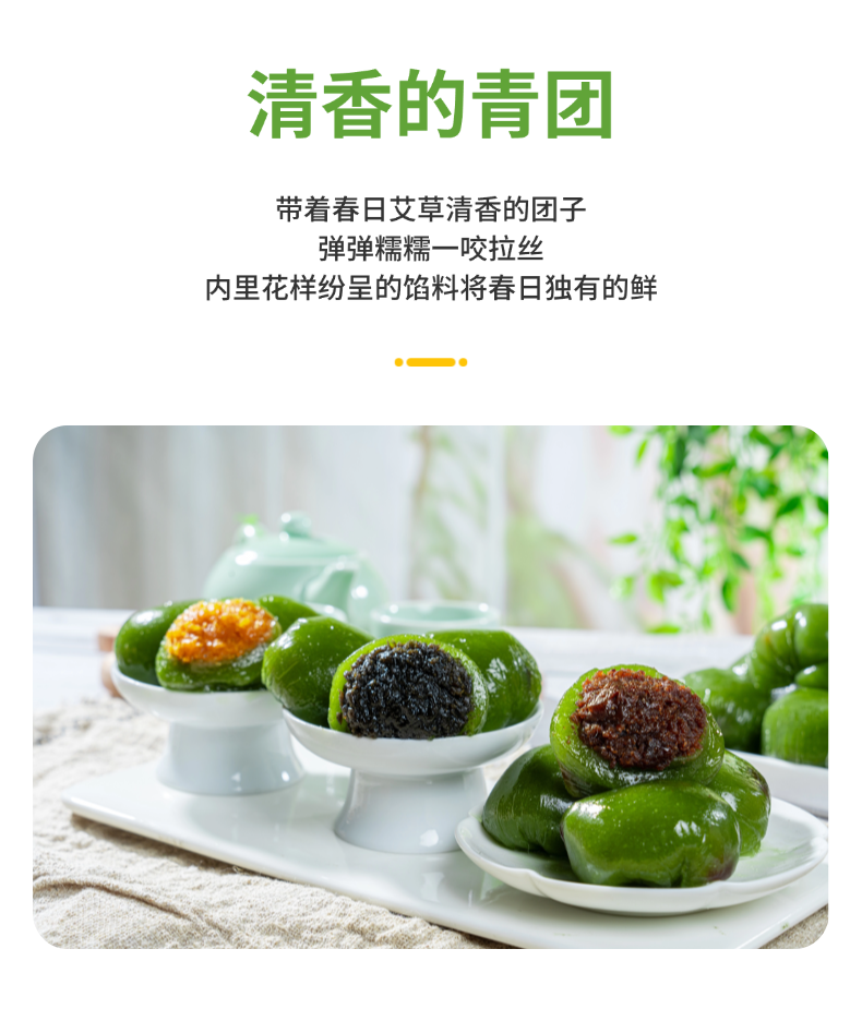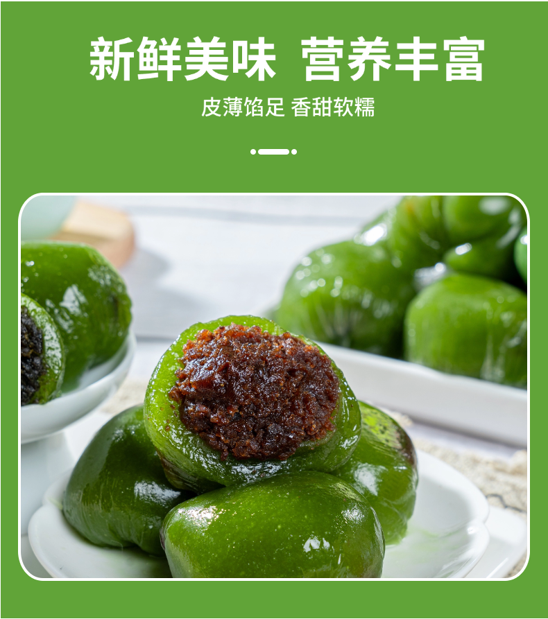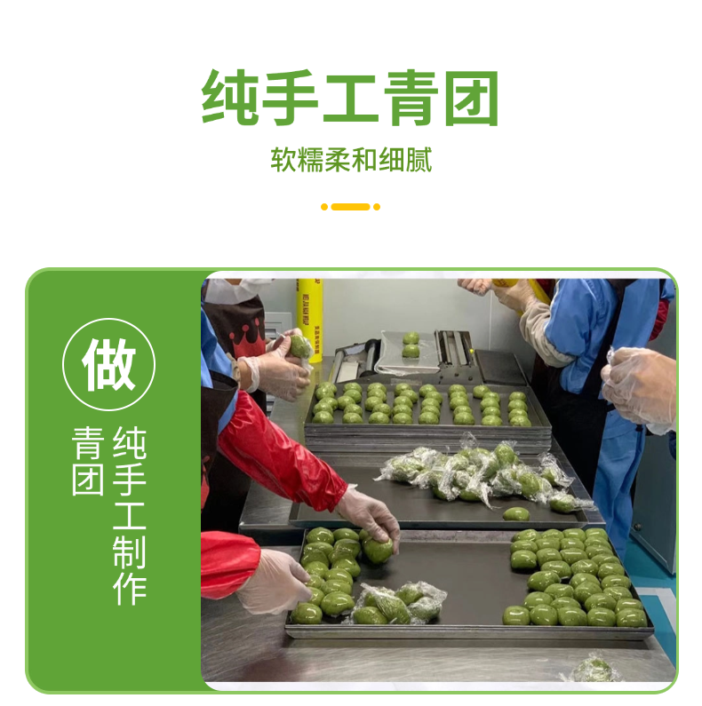 【产品亮点】 精选艾草和优质糯米粉,柔嫩不粘牙,配料不添加人工色素、防腐剂