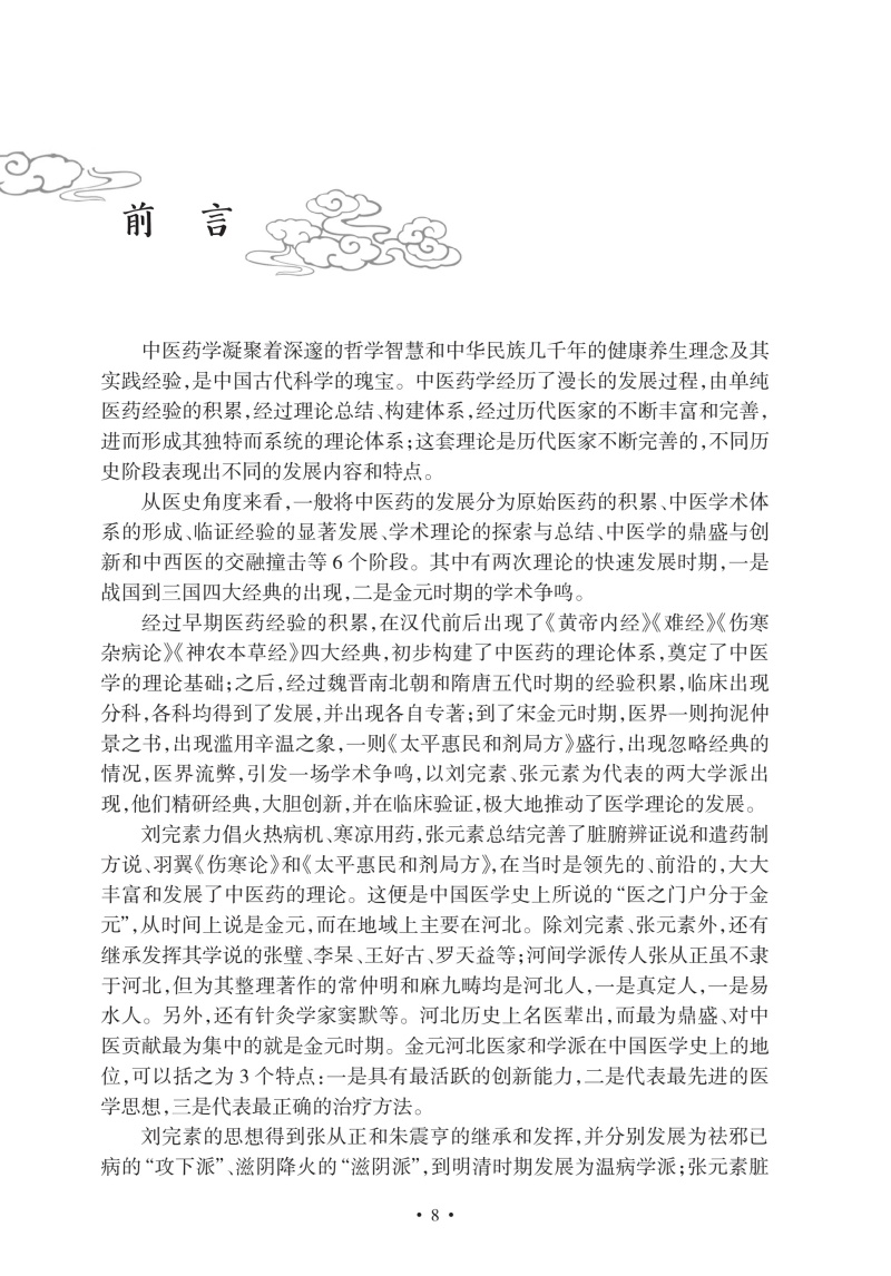 本书共分两部分,**部分总论旨在论述河北是金元时期的医学中心,包括崛起过程、理论创新和历史意义;**部分各论详细阐述刘完素、张元素、李东垣、王好古、罗天益、张璧、窦默、常仲明与麻知己等著名河北籍医家对医学的重大贡献,均为当今**研究成果。本书采用分题论述的方式,每个医家择其可陈者述之,按生平、遗迹、著作、学术渊源、医学思想、名方、名药、临床应用顺序排列,不求其全,但求其新,不作泛泛之谈,但求析疑解惑,兼具科学性与实用性,便于学习和应用。