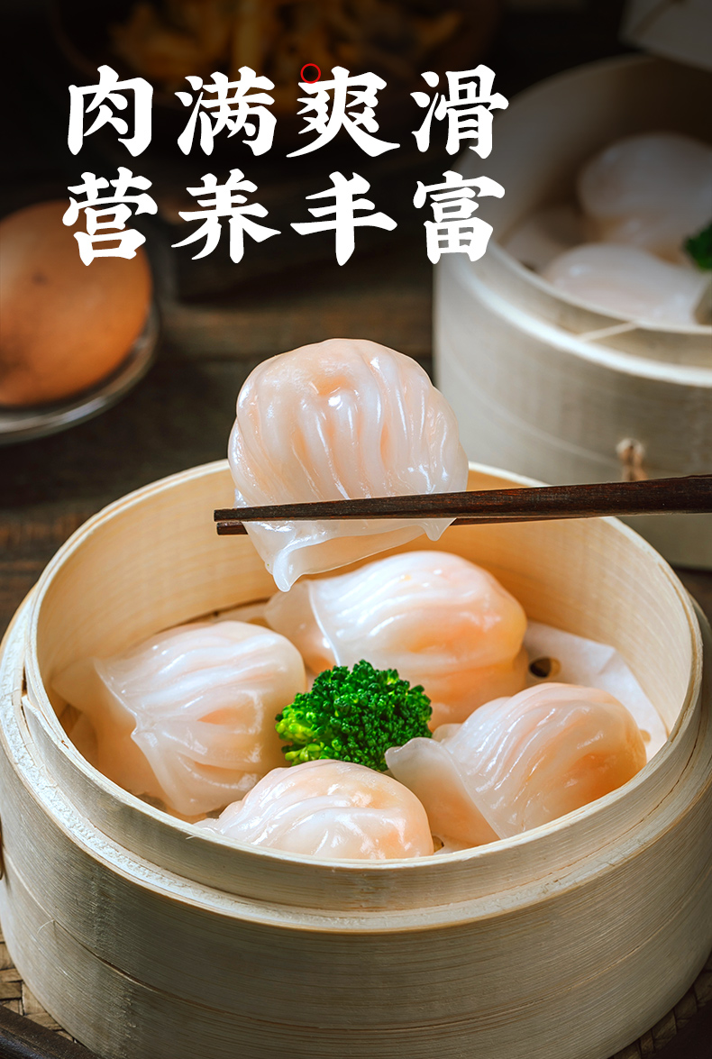 【舌尖上的美味!港式水晶虾饺】全家人都爱吃,虾粒更大颗,虾肉更新鲜,真材实料看得到,经典早茶饺子,高端早点蒸煮虾仁,L