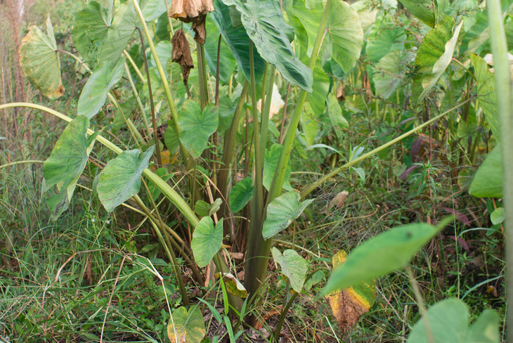 良人自留多年芋艿种,人工除草培土后,盖上厚厚的油菜秸秆覆盖,防止土壤板结又透气保湿,腐殖后成为芋艿肥料。
