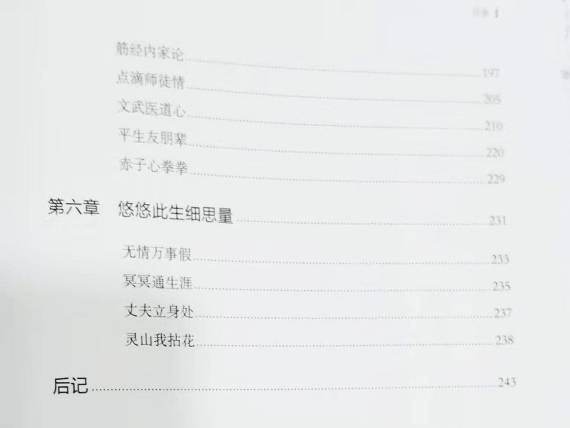 释尊曰诸有为法,无不含藏三八之苦,故有无量众生,亦有无量众苦。孟子曰天将降大任者,莫不苦其心志,劳其筋骨,乃至饿其体肤,故儒家所谓贤哲者,亦莫不以苦志其心也。惟吾道以摄生乐命为本,而人经世间,必先行苦以证之,刻苦以成之,而后始能以乐道而终之也。余生也苦,而吾道可乐!余之生也,逢日寇肆毒中夏,慈亲皆与群鬼周旋,不違宁处,遂诞余于炮烁之墟,襁褓于锋镝之间,龆龄而慈母弃养,束发而严父见背。未及弱冠,遭逢时艰,避乱黉舍,窜逐遐荒,退谧绝域者,几三十年焉。身在穷处,藏器待时,金质百炼而惟精,玉德久幽而不昧。故惟默诵诗书,潜运玄功,体会天人之道,深识武医一体。及天下化新,衔命巡蜀,咨求武林耆旧,遍识各家奇技。复以擅名杏林,累疗伤患于奥运之会;坐受征命,数施奇术于长安之阙。当斯时也,声誉赫赫,去就成市,若以此炫世,富贵立成。然余行如狷士,不避强御;性本书生,不喜奔竞。情之所厌,对咫尺于千里;气之所钟,轻白金于一诺。故遽去名利之机,而悠游林泉之下,今日之乐,可胜言哉!