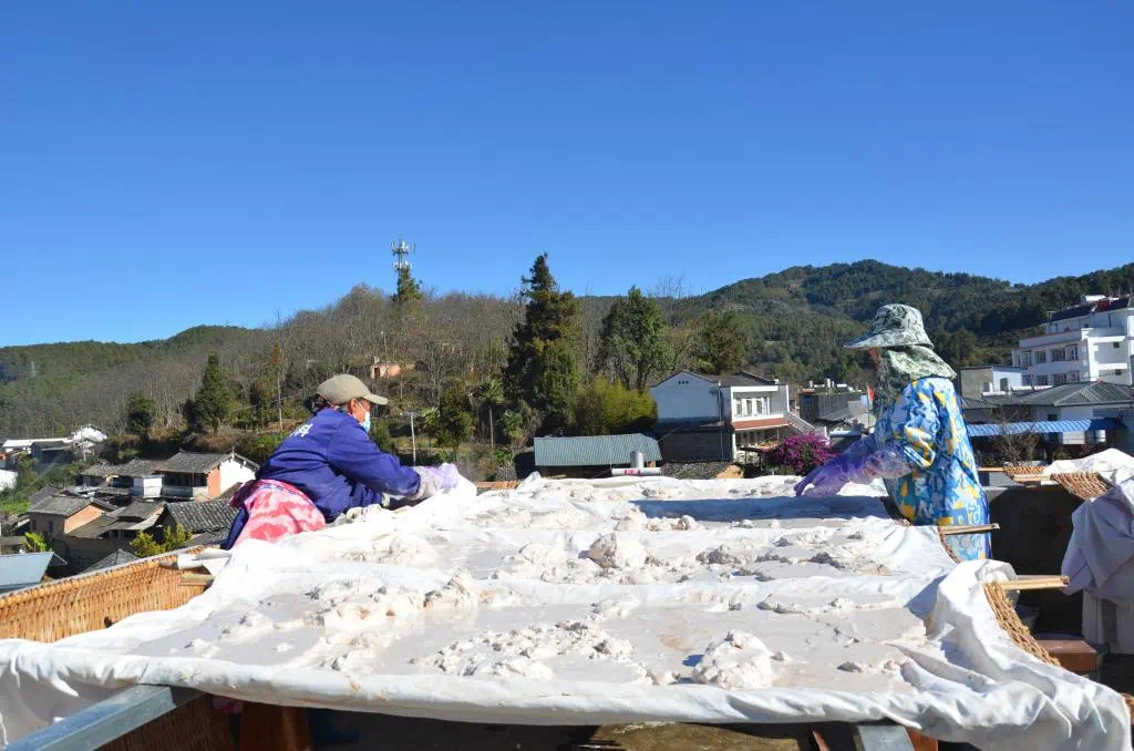 把洗干净的葛根进行粉碎,然后放进纱布里加入清水过滤,再把过滤出来的液体静置盛放,等待葛粉沉淀到水底。 最后慢慢倒掉上层的水分,把沉淀的葛粉汁水倒出,进行晾晒