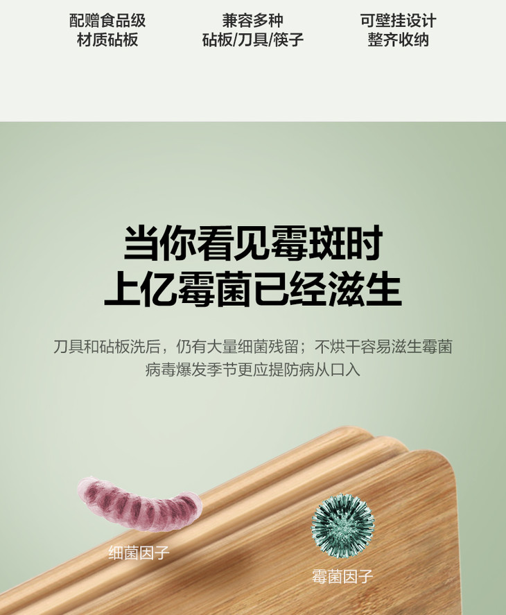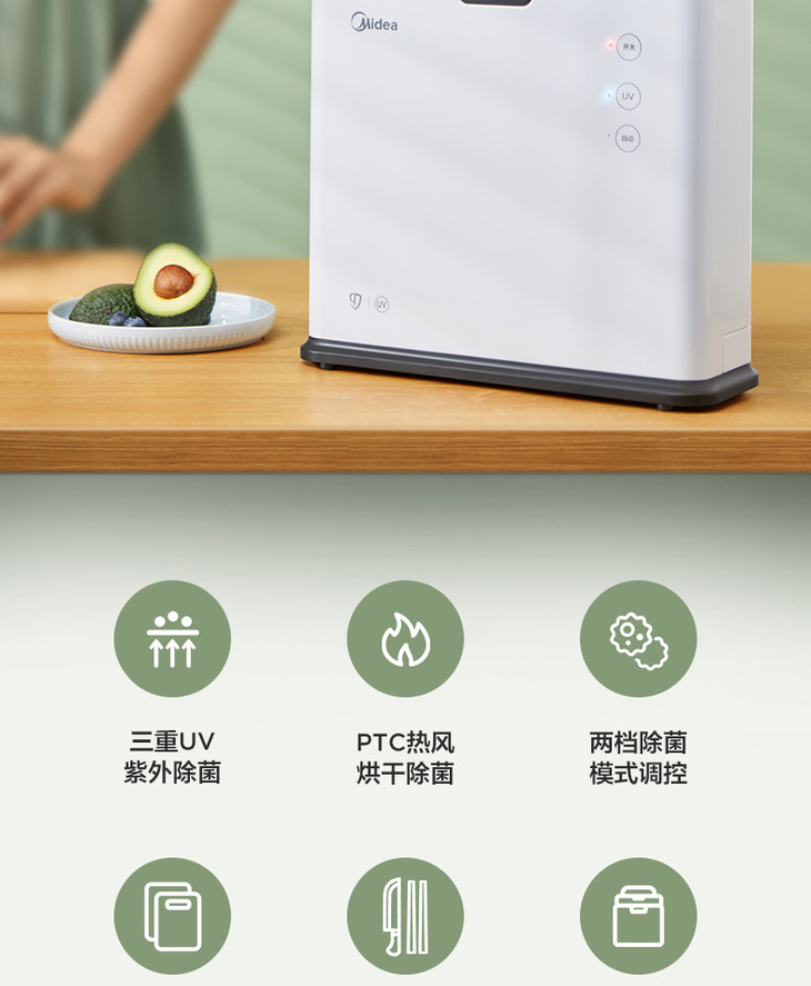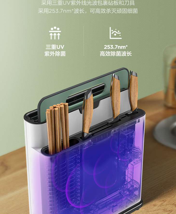 美的(509278)砧板刀具消杀毒除菌机家用小型多功能智能紫外线烘干防霉收纳菜板XS-K01-A白色