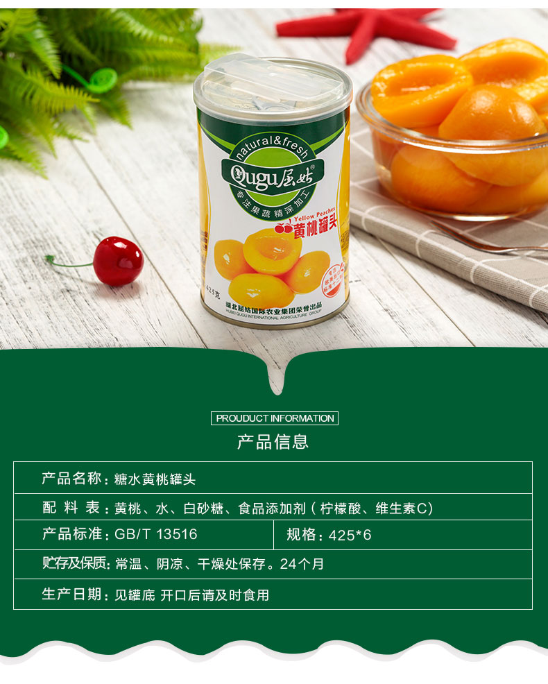 屈姑黄桃罐头425g*6