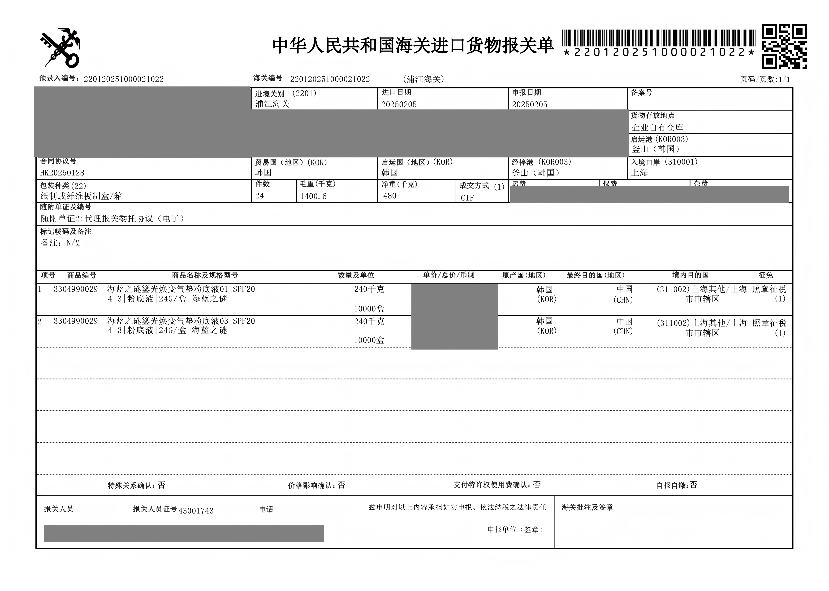 提供海关资质证明