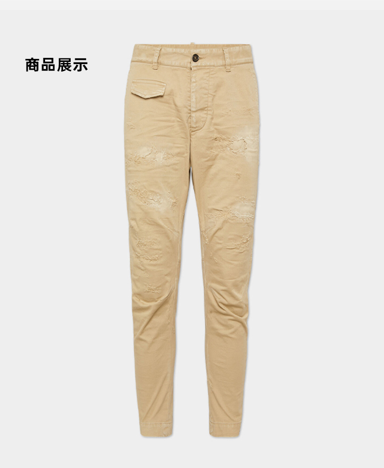 DSQUARED2 男士破洞斜纹弹力棉质休闲裤 卡其色 S74KB0951 S39021 111