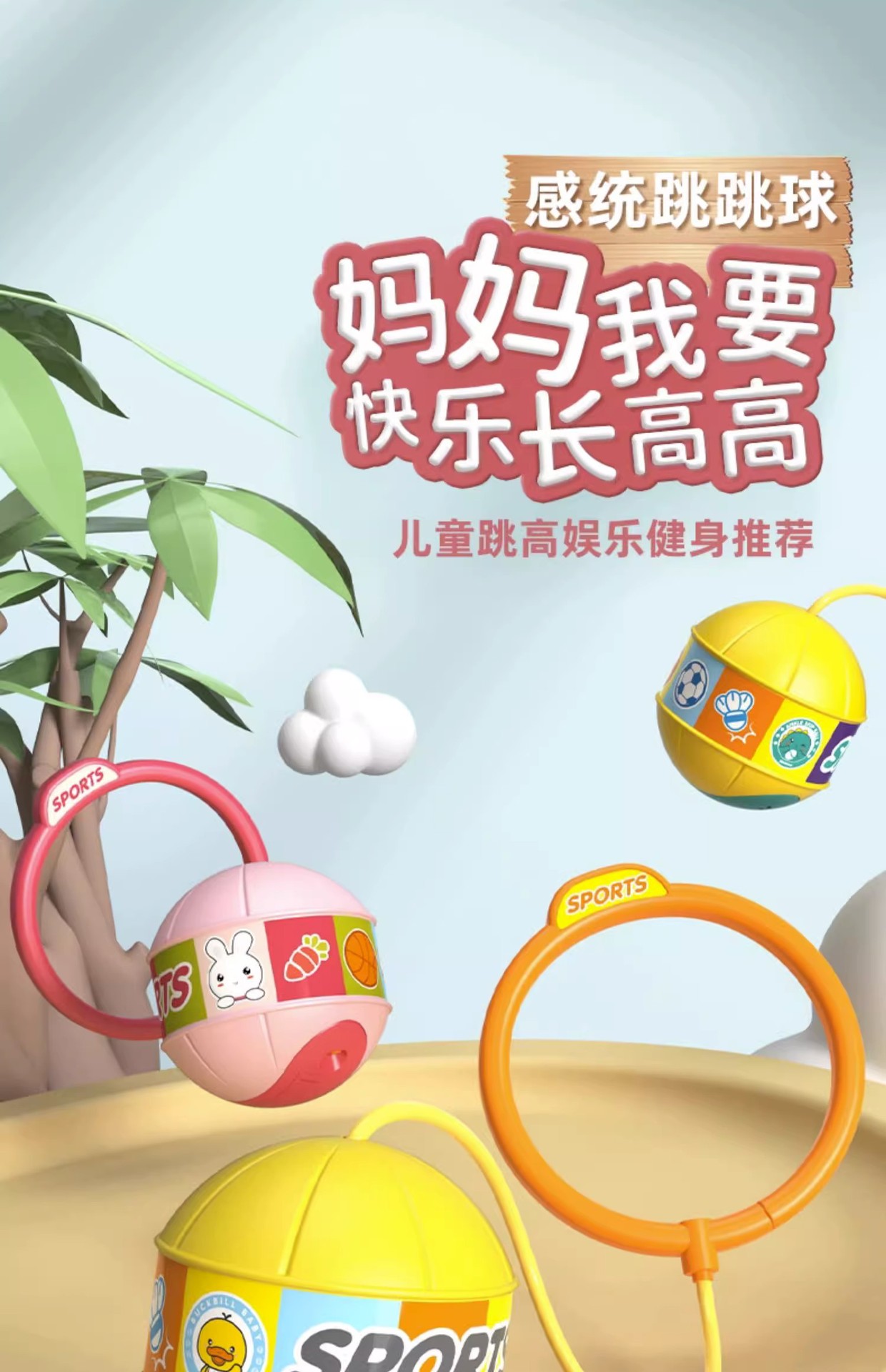 【快乐长高跳跳球 赠电池】儿童感统跳跳球 增长助高 易学好跳 培养平衡感 轻便设计 圆滑不伤人