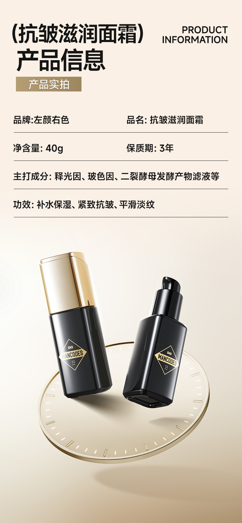 💥买即送‼冰川水💥秒杀‼【到手¥43/瓶】左颜右色 抗皱滋润面霜 40g(3瓶装) 提拉紧致 淡化纹路