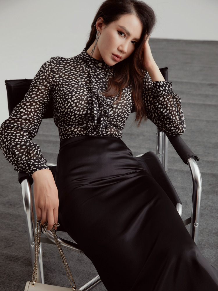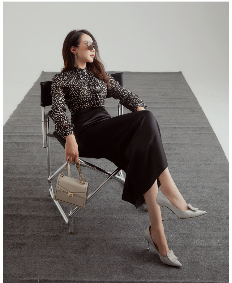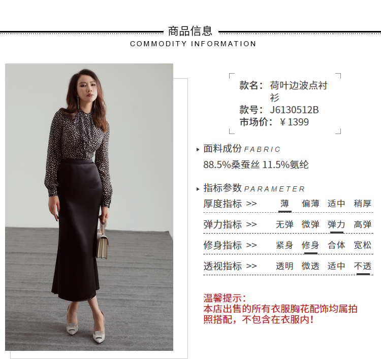 “上海1943”复古电影感100%真丝波点衬衫四季可穿J6130512颈袖添香