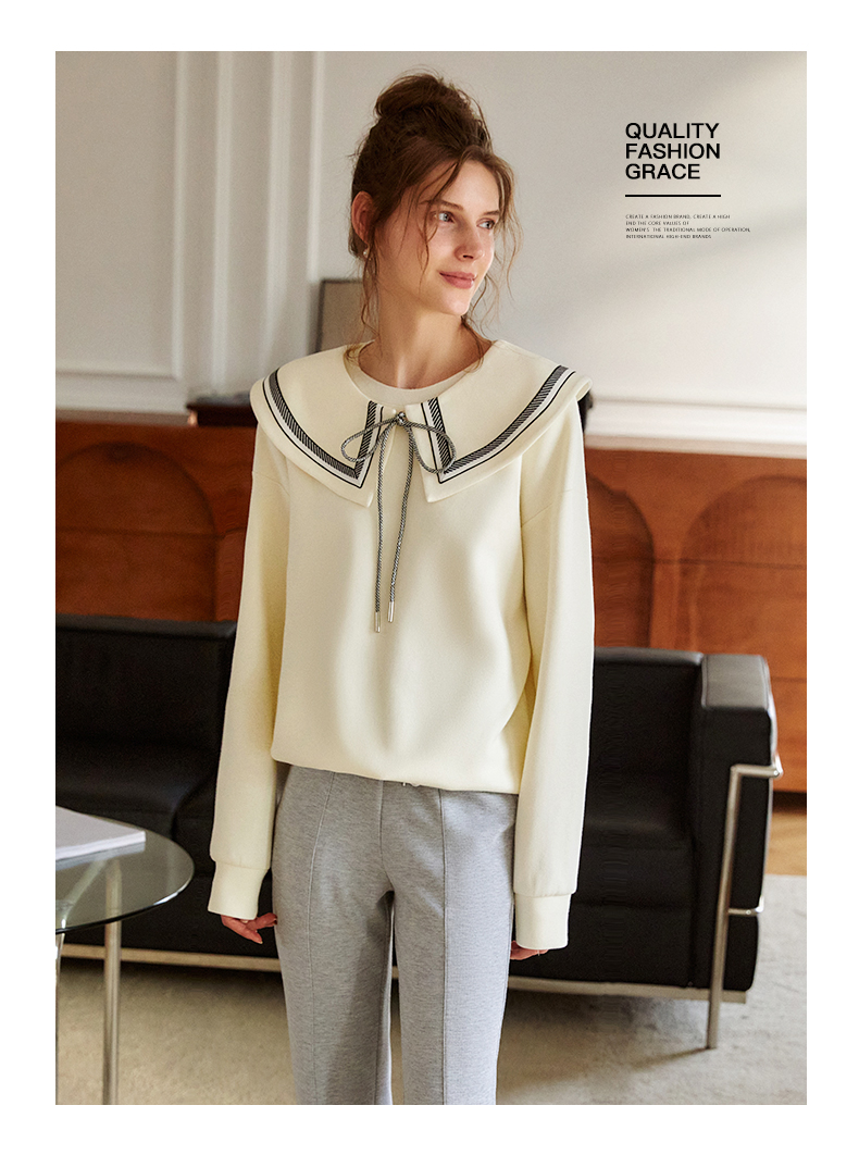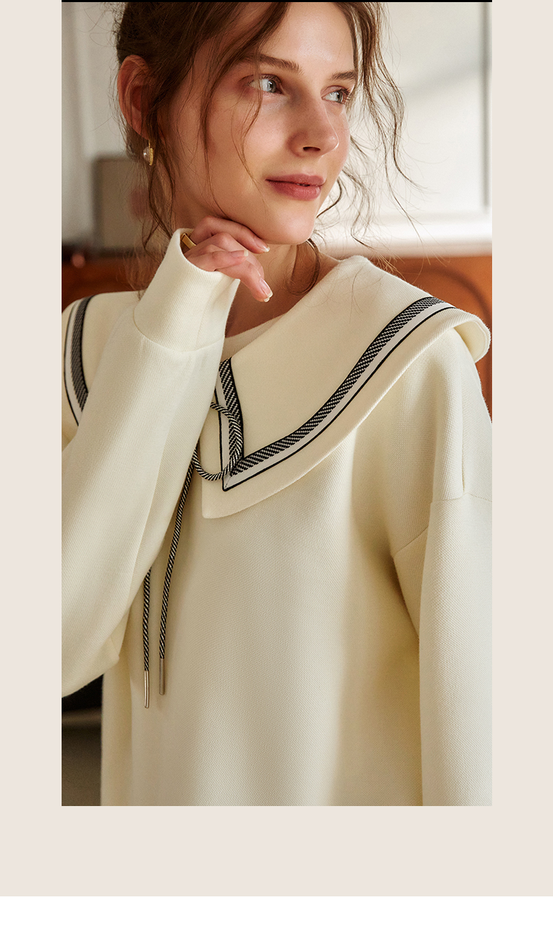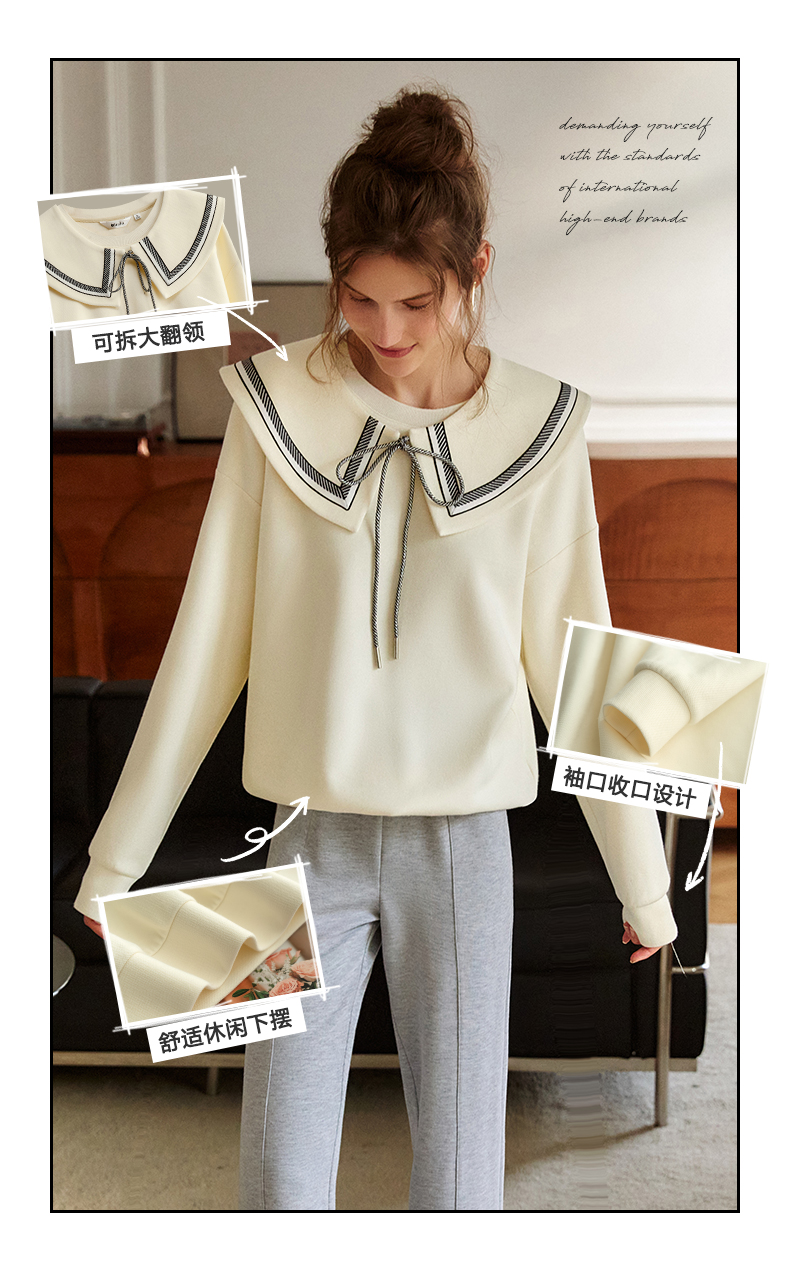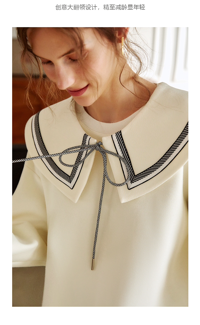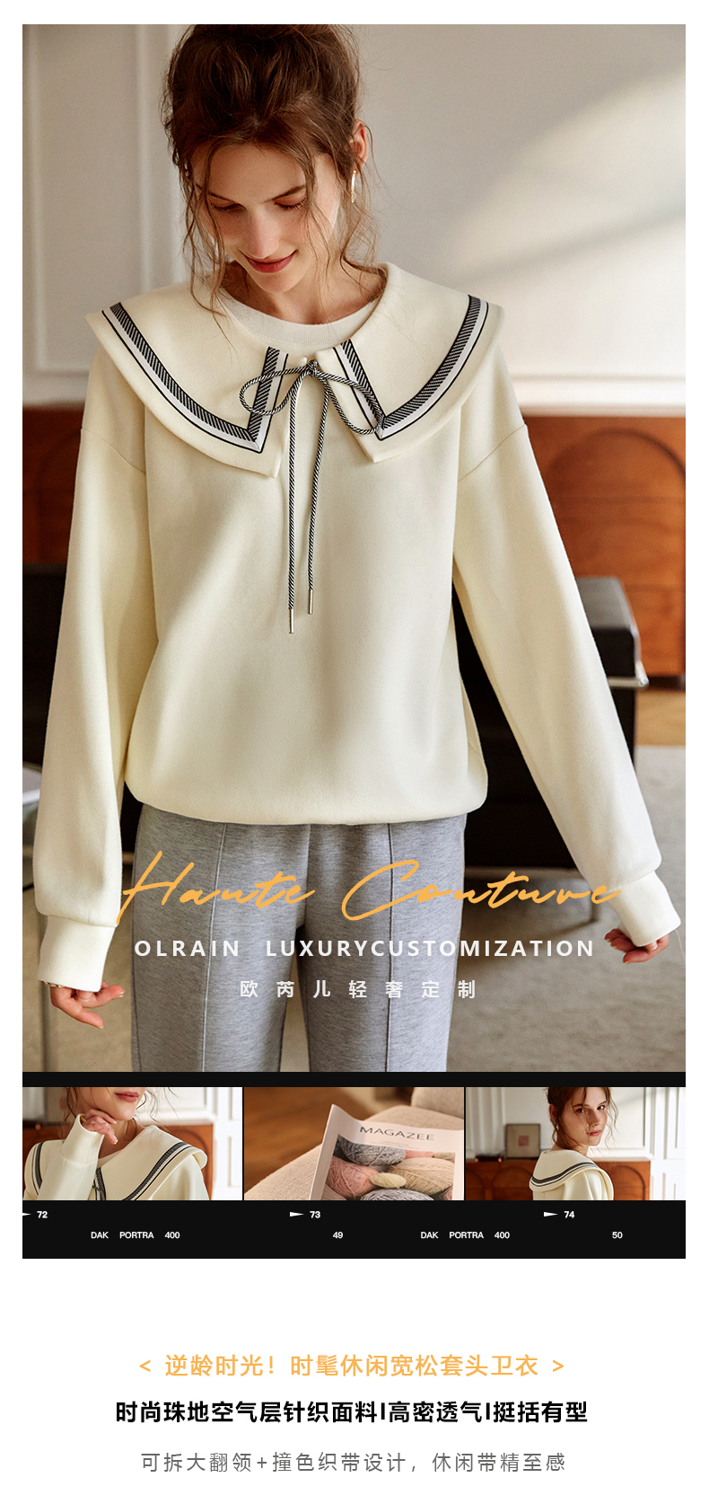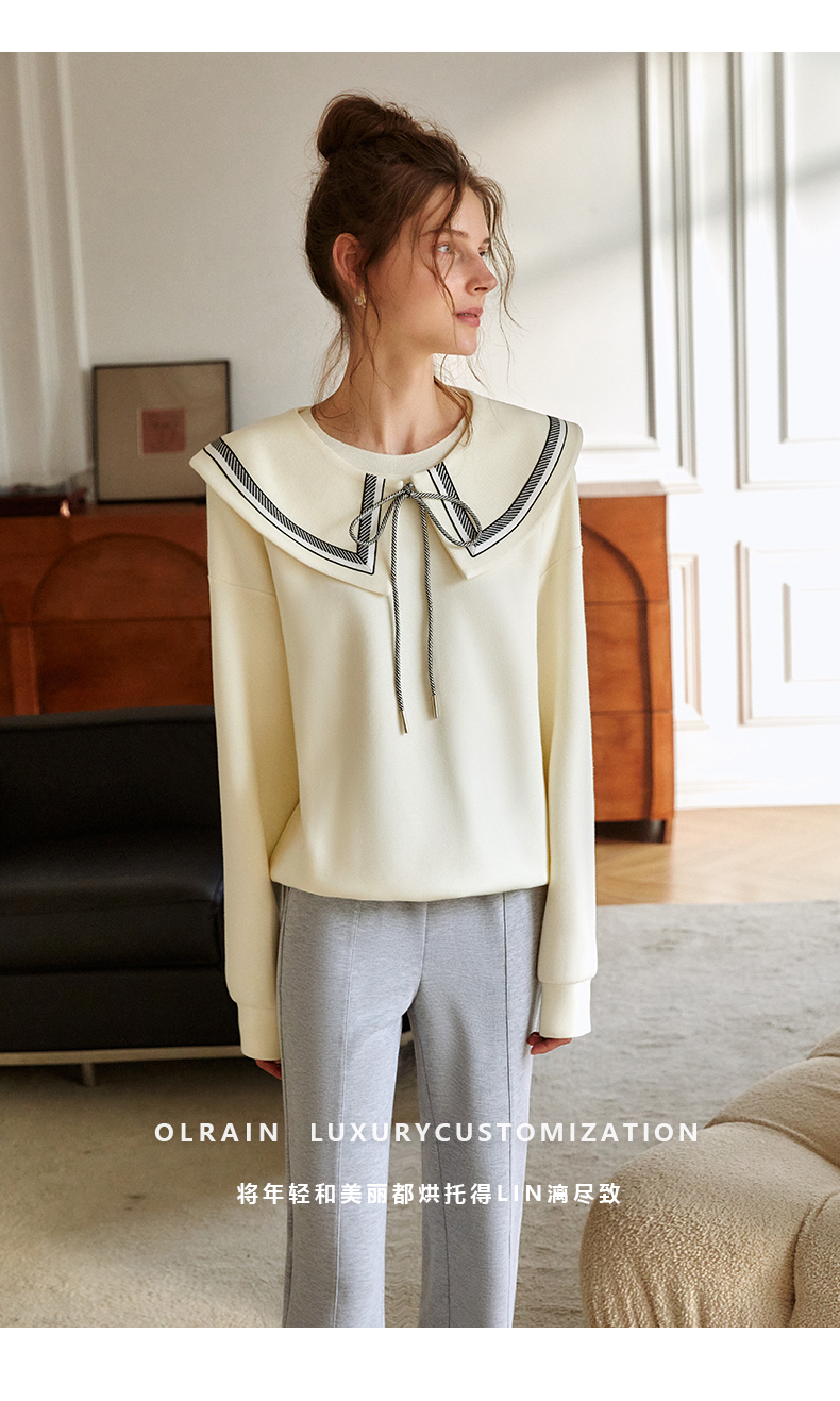 欧芮儿纯色卫衣女2021新款白色圆领设计感小众ins潮宽松上衣