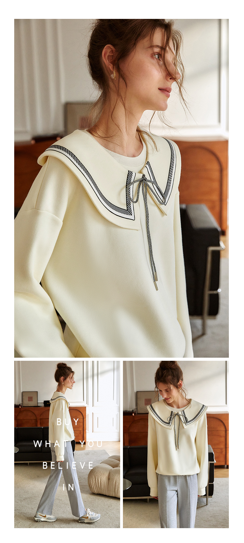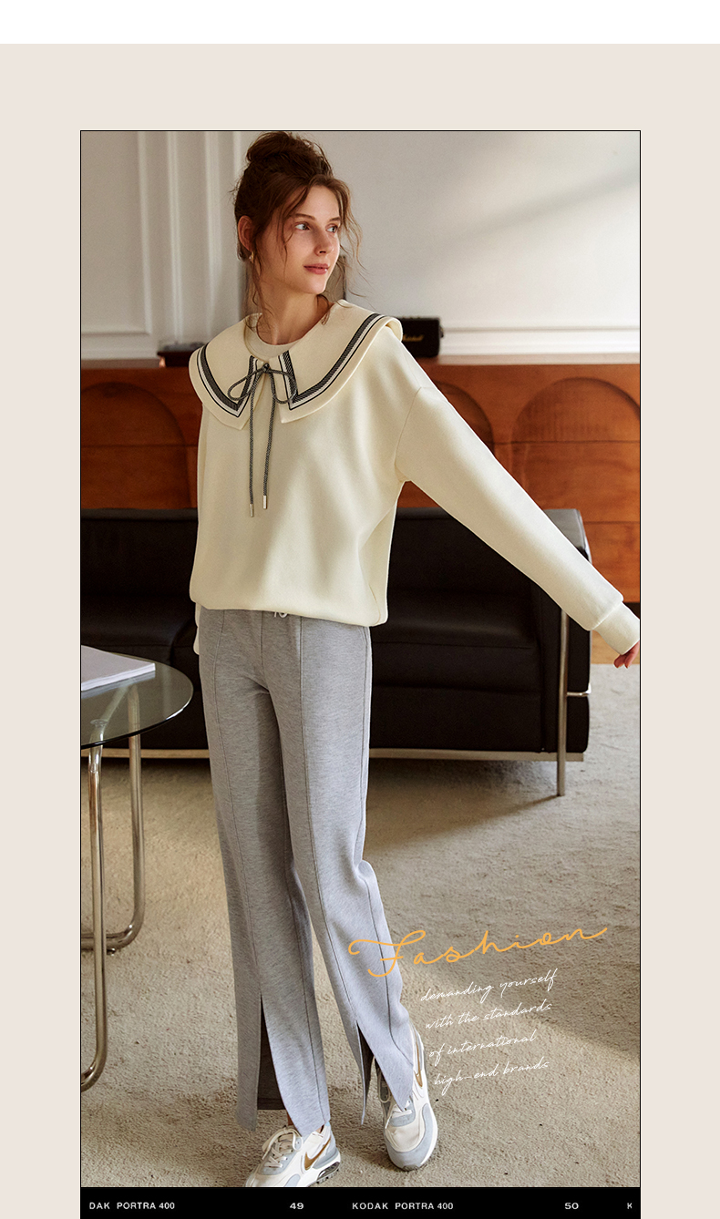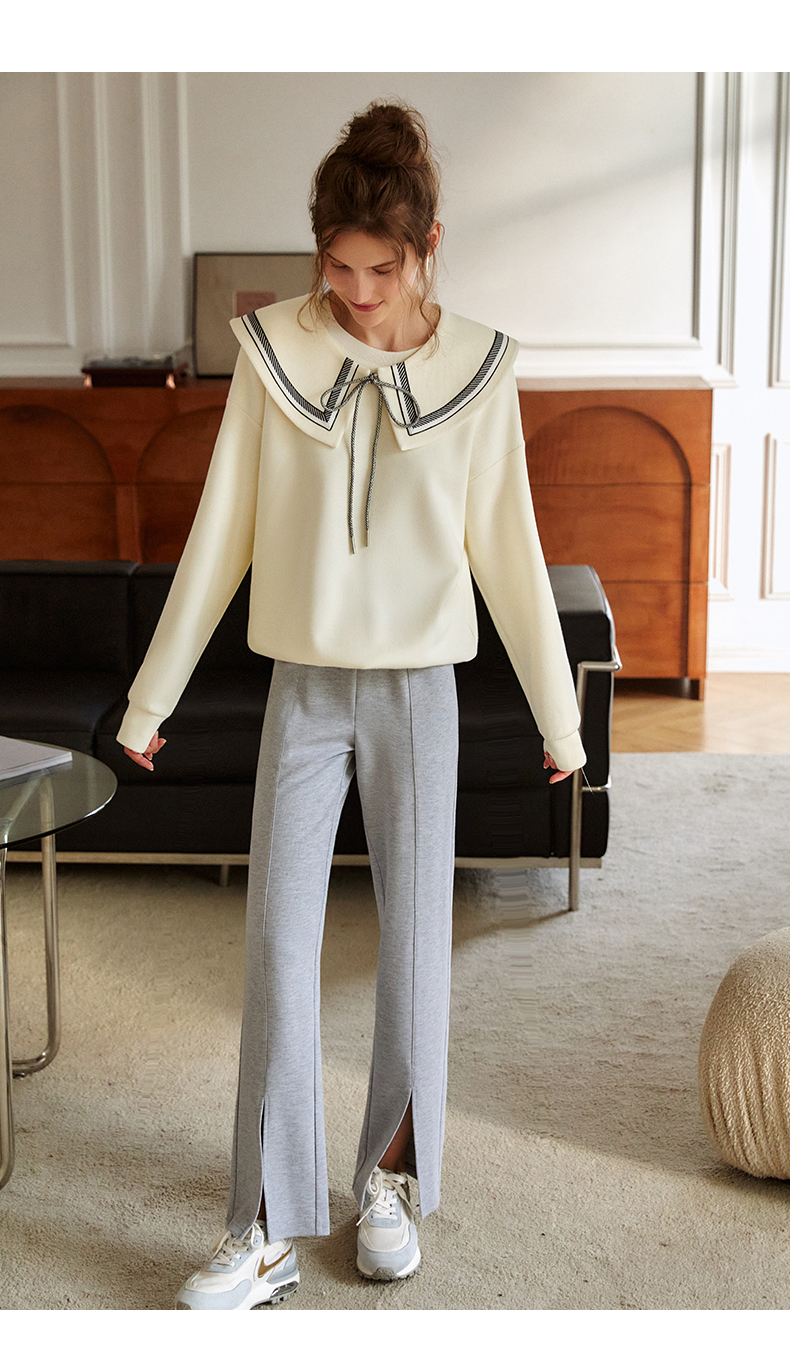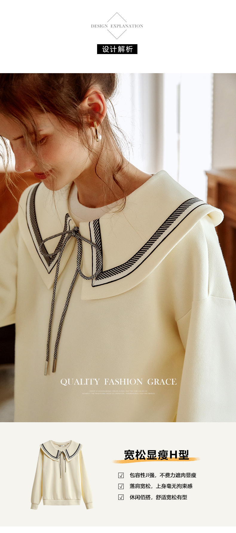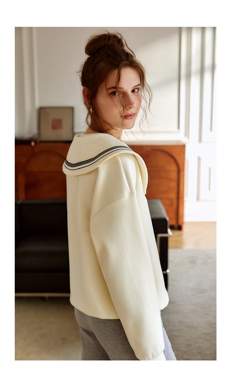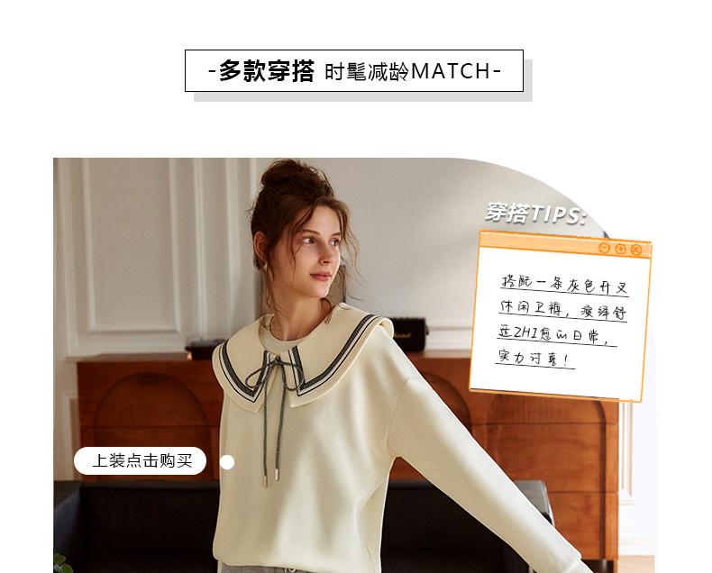 欧芮儿纯色卫衣女2021新款白色圆领设计感小众ins潮宽松上衣