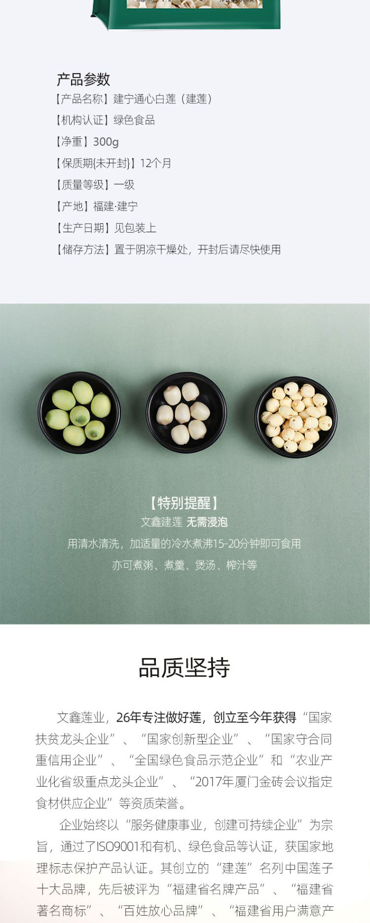 建莲 绿色建宁通心白莲 300g
