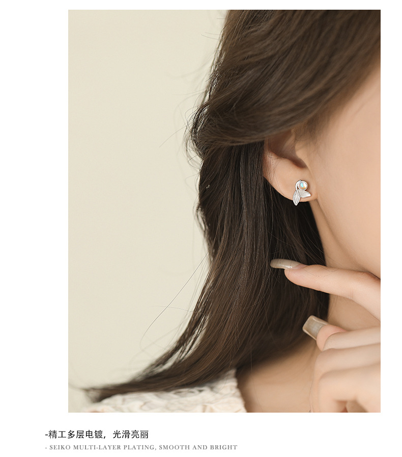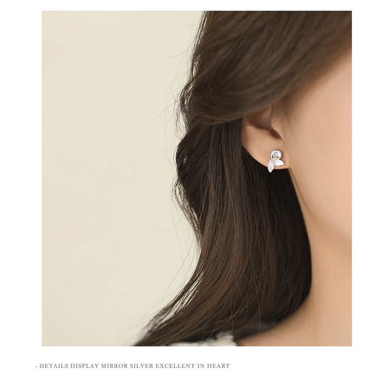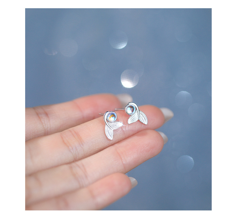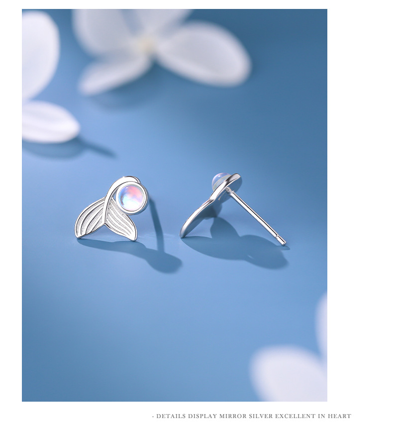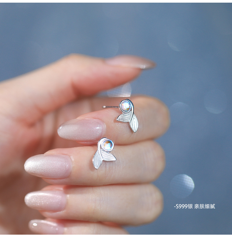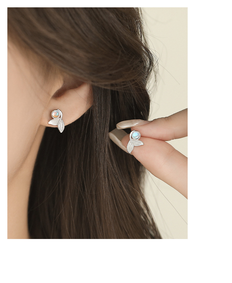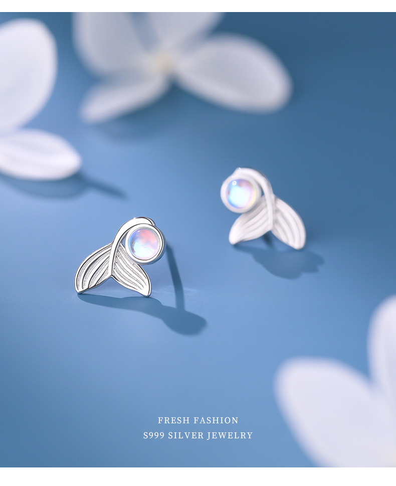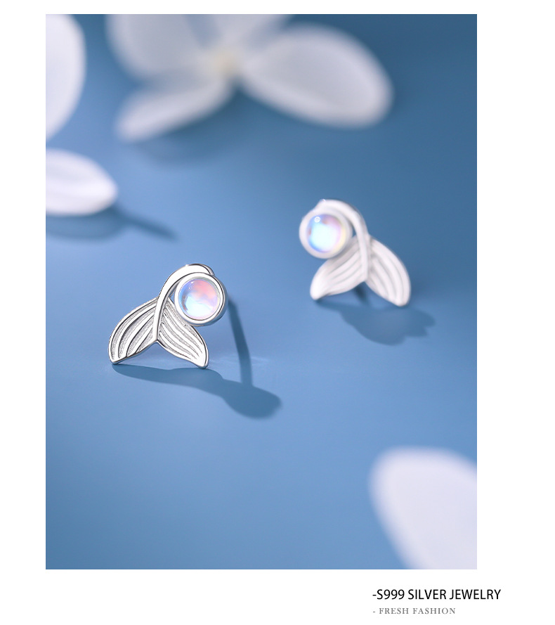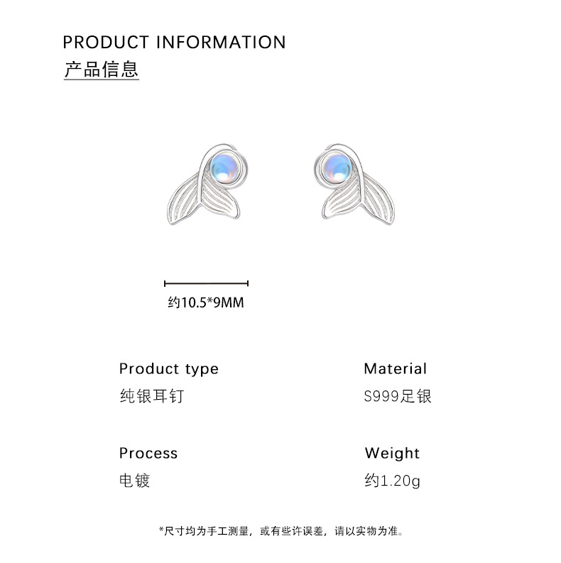 【梦幻鱼尾】S999纯银月光石人鱼尾巴耳钉【YXS-E5447】