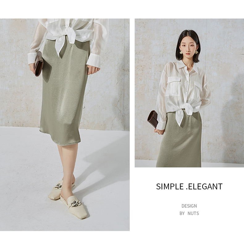 NUTS秋季新款简约时尚通勤风百搭包臀醋纤半身裙女231063052B