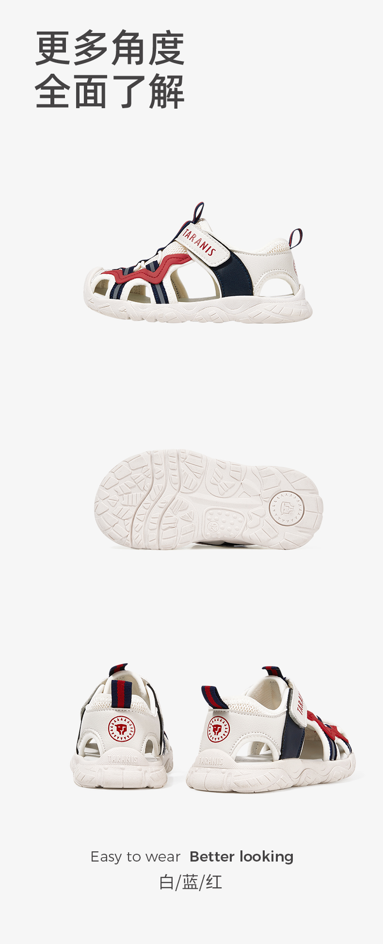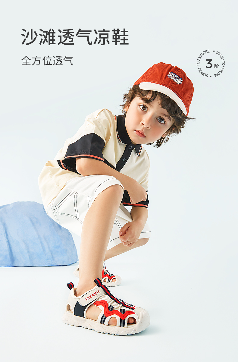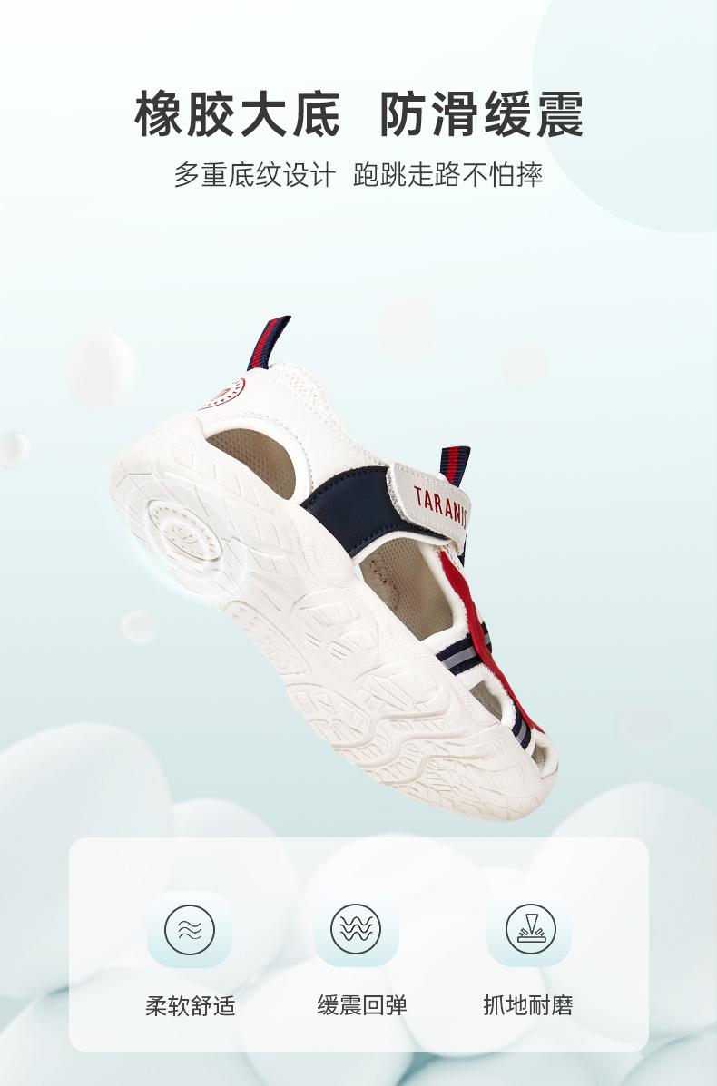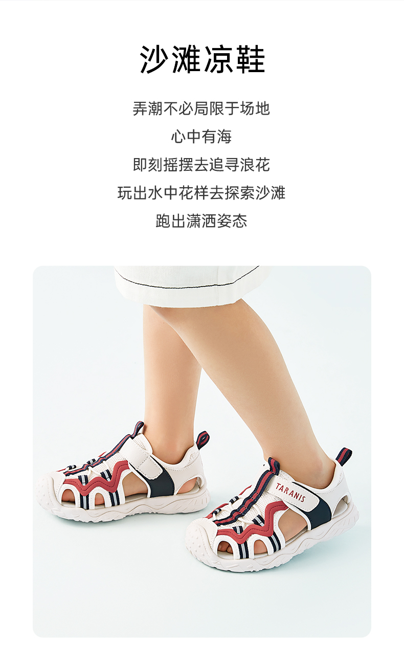 泰兰尼斯夏新款男童防踢包头运动凉鞋小童鞋撞色软底透气休闲鞋子T19X3B2732
