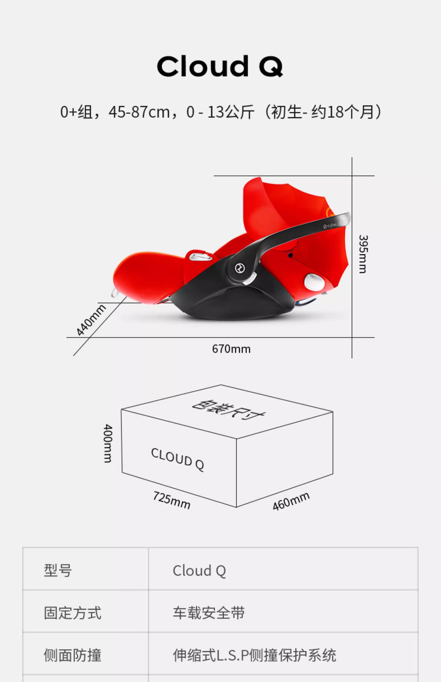 秋叶金 | Cybex 铂金线CloudQ 新生儿可平躺车载提篮0-18月