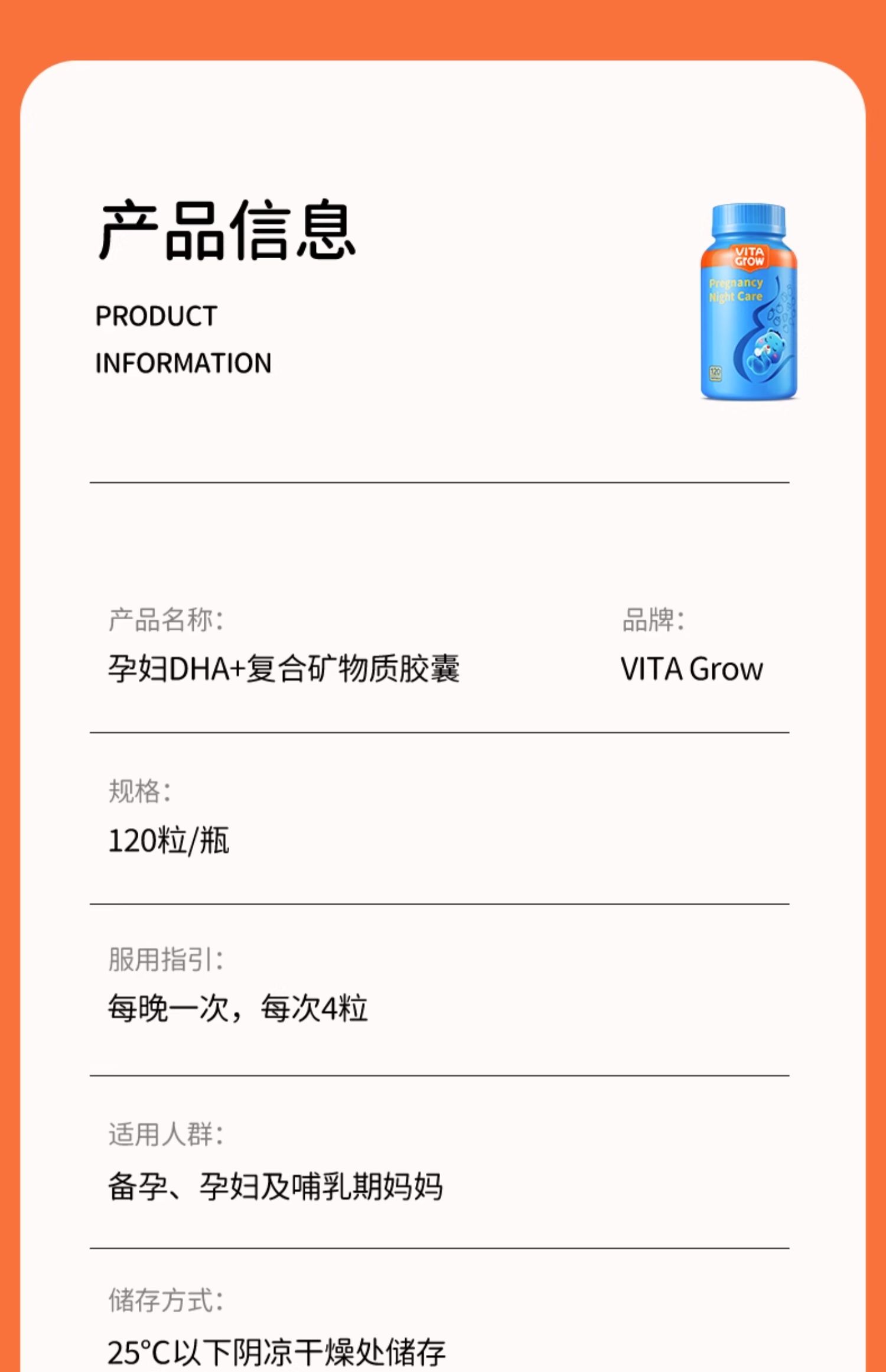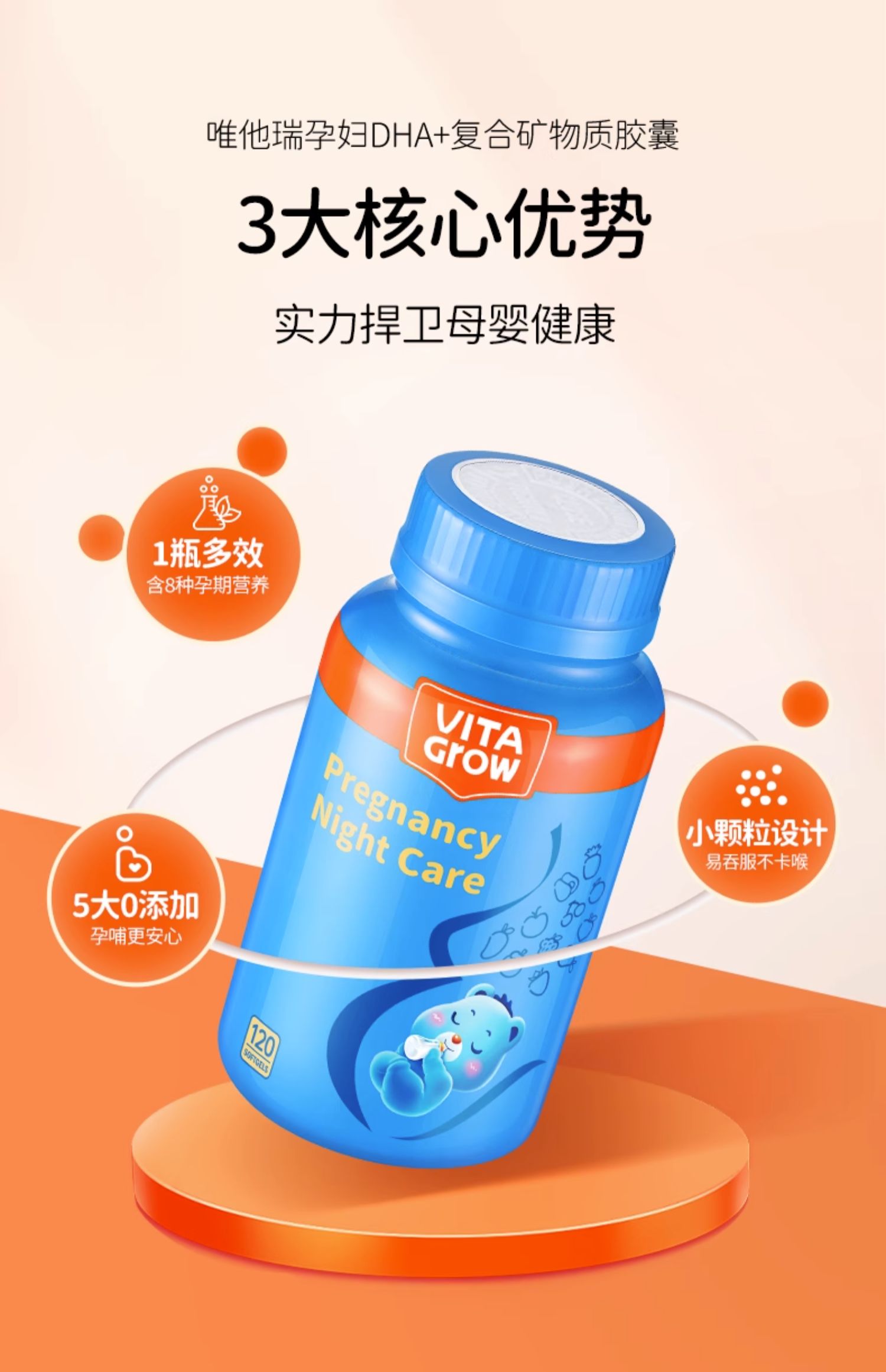 VITA Grow唯他瑞孕妇矿物质鱼油DHA备孕怀孕哺乳期夜服软胶囊*1瓶(有效期至2025年8月19日)