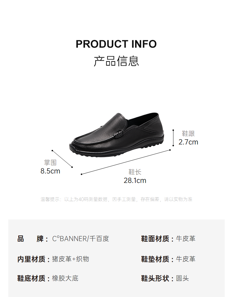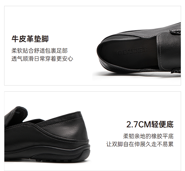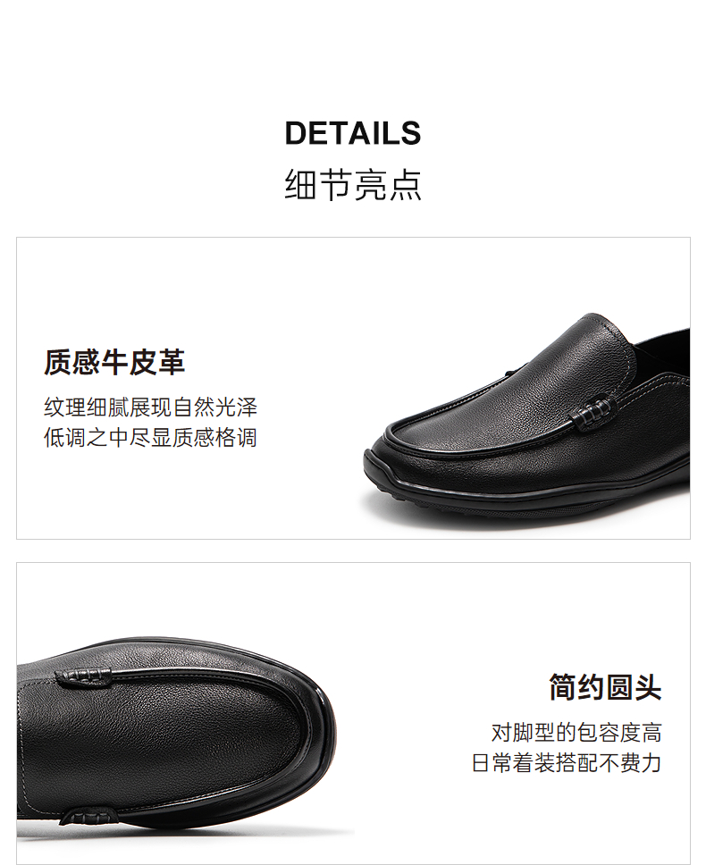 千百度男鞋正装皮鞋轻便真皮休闲商务一脚蹬圆头皮鞋A25407220