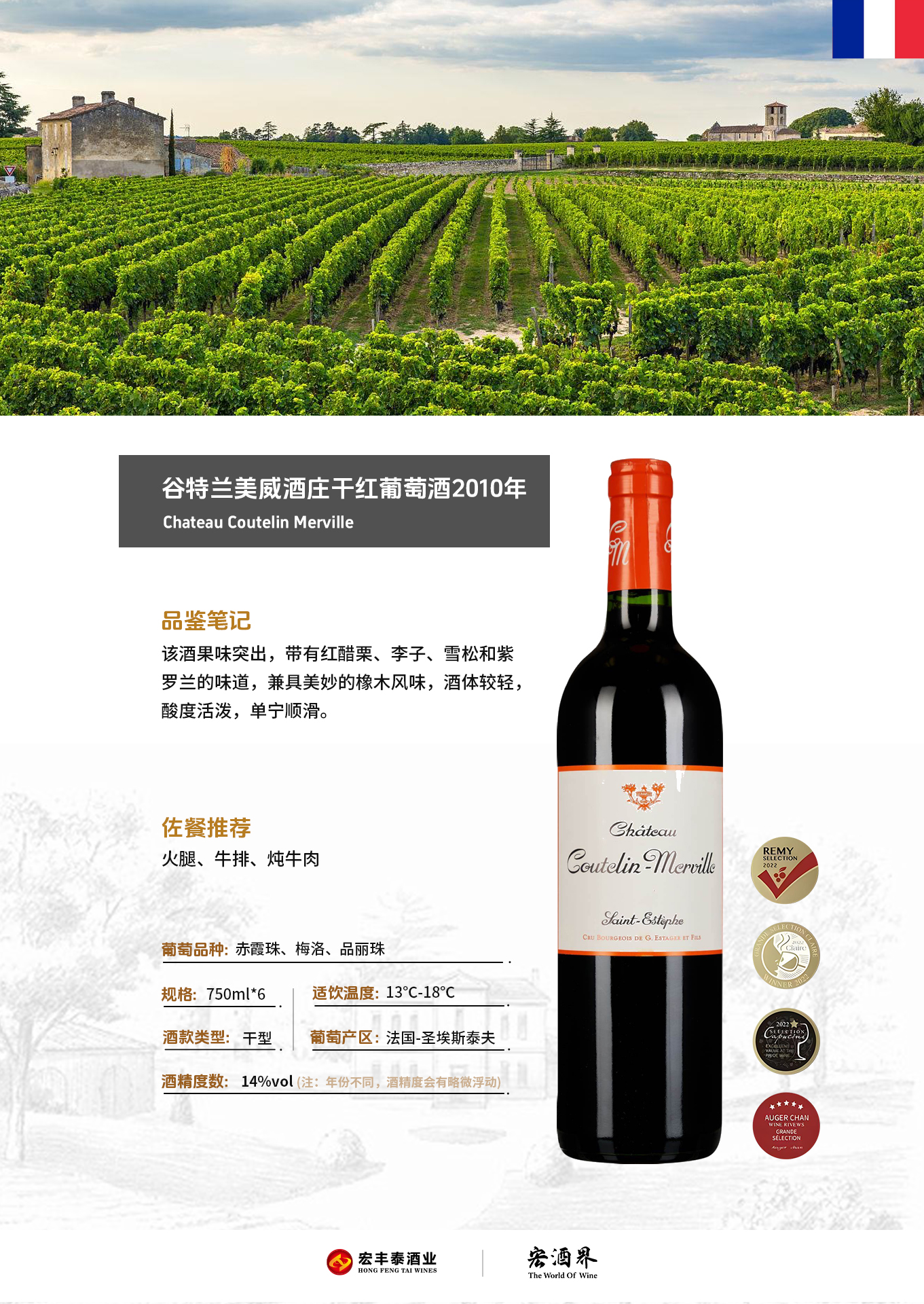 法国-谷特兰美威酒庄干红葡萄酒2010年&宏酒界甄选