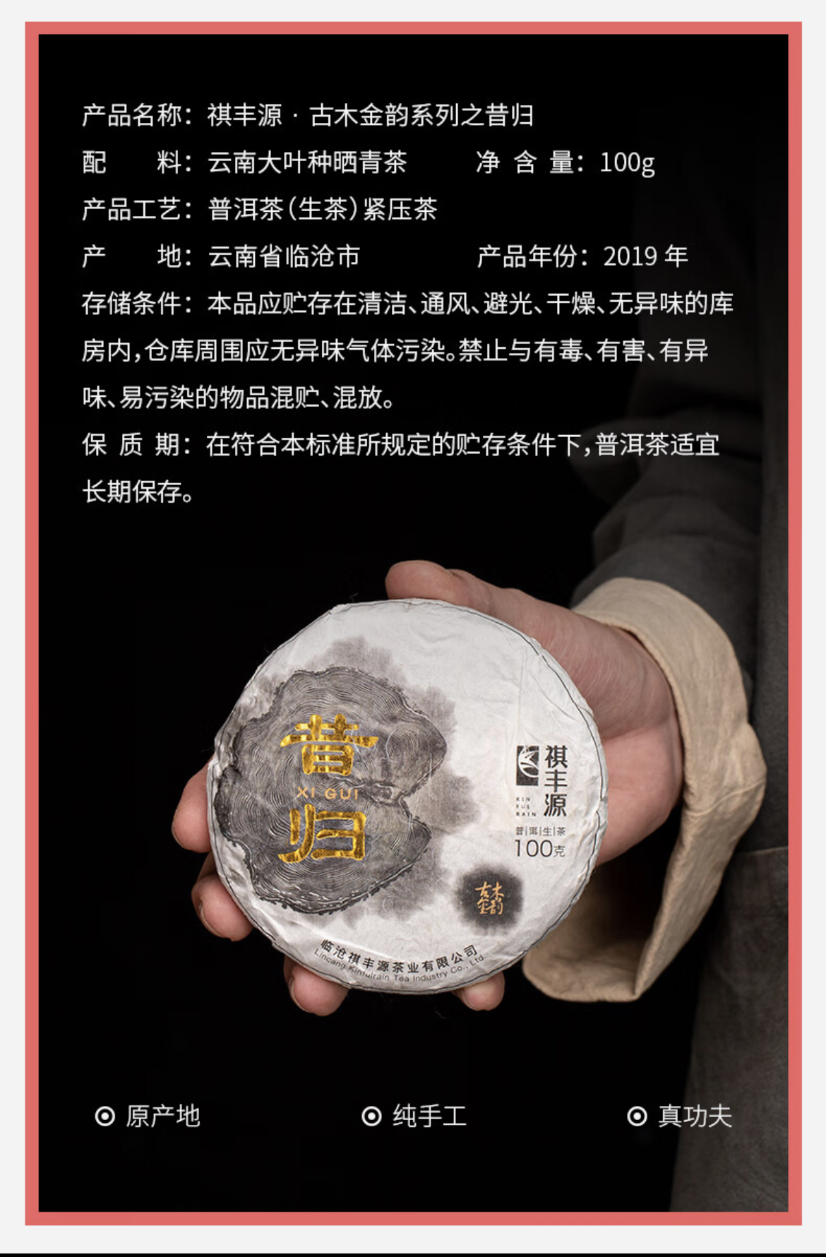 生普 | 祺丰源 2019古木金韵-昔归100g/饼