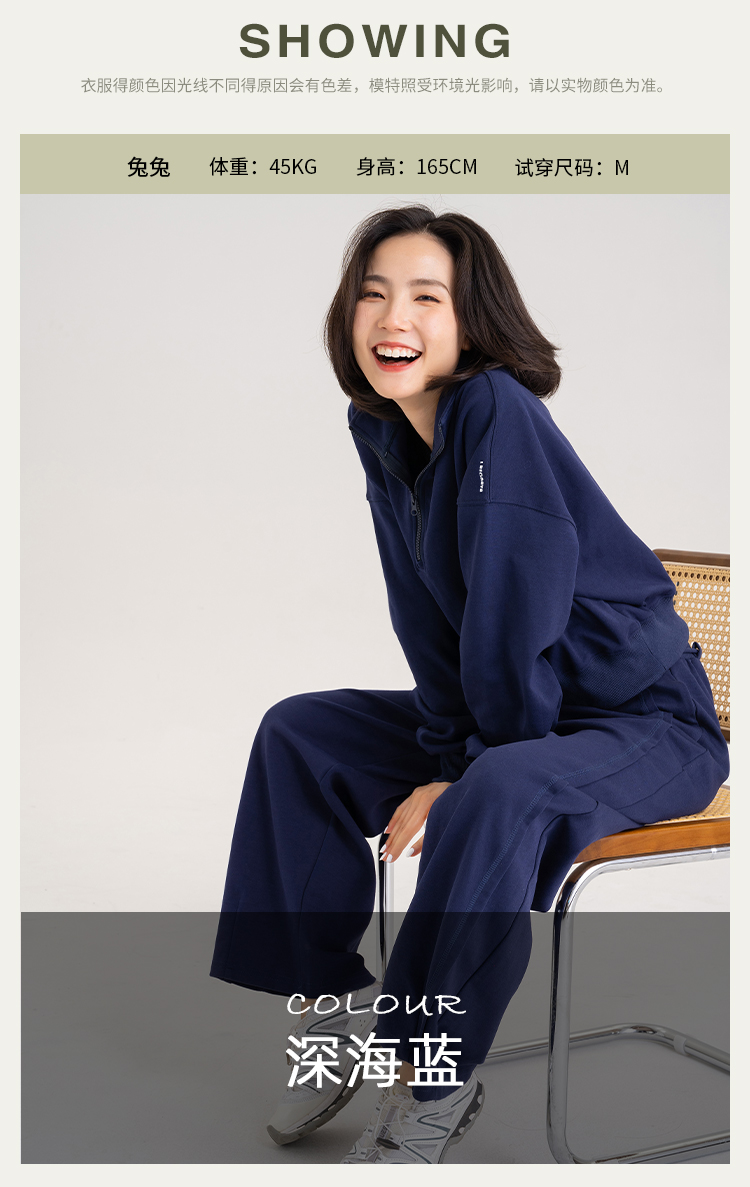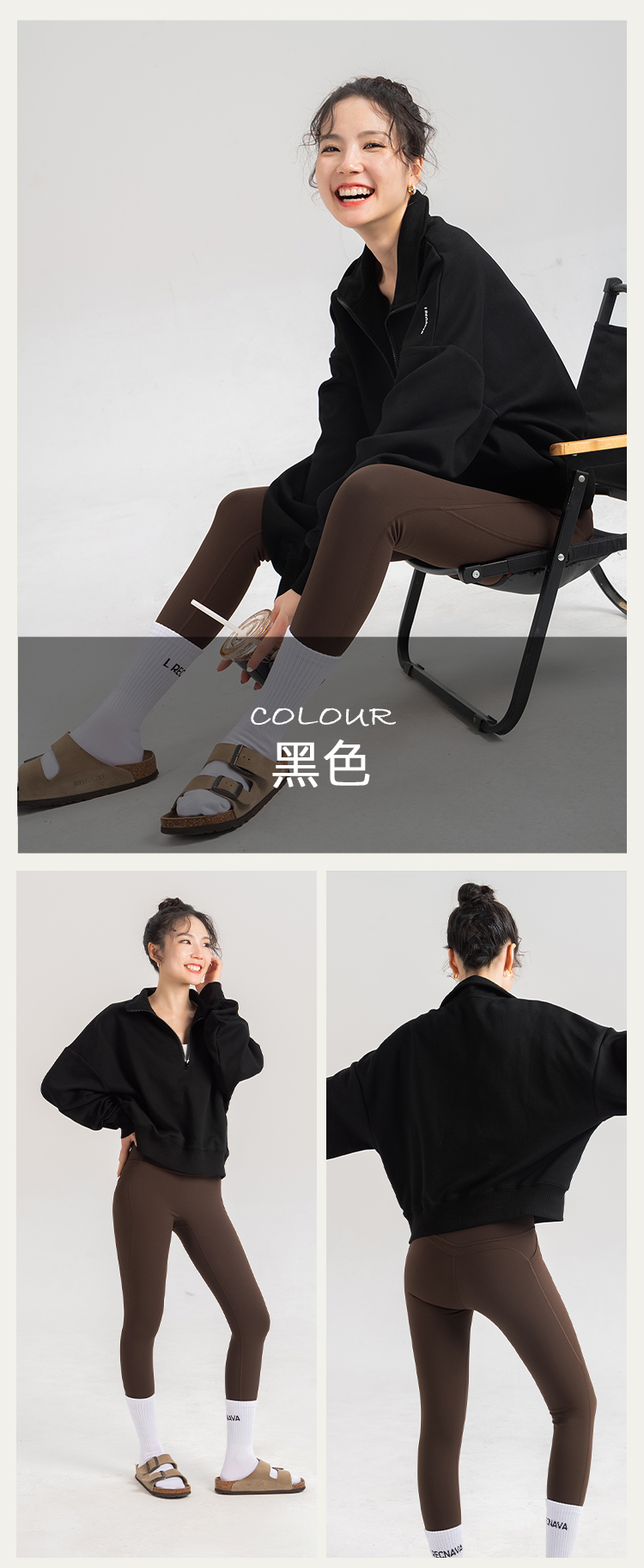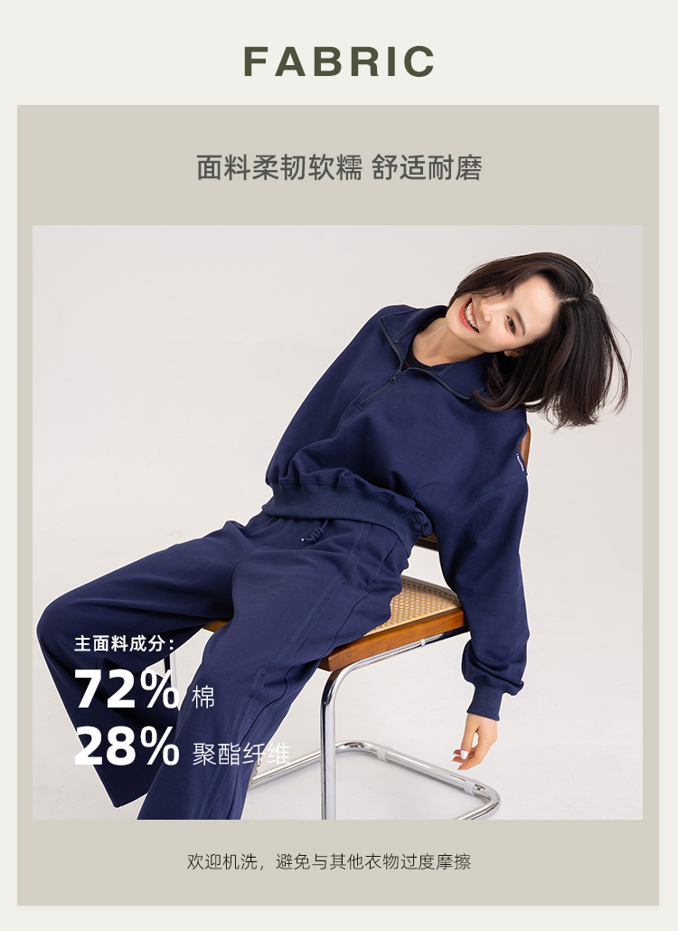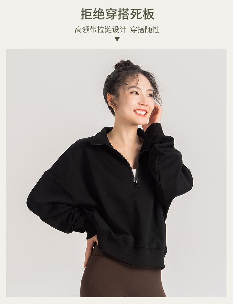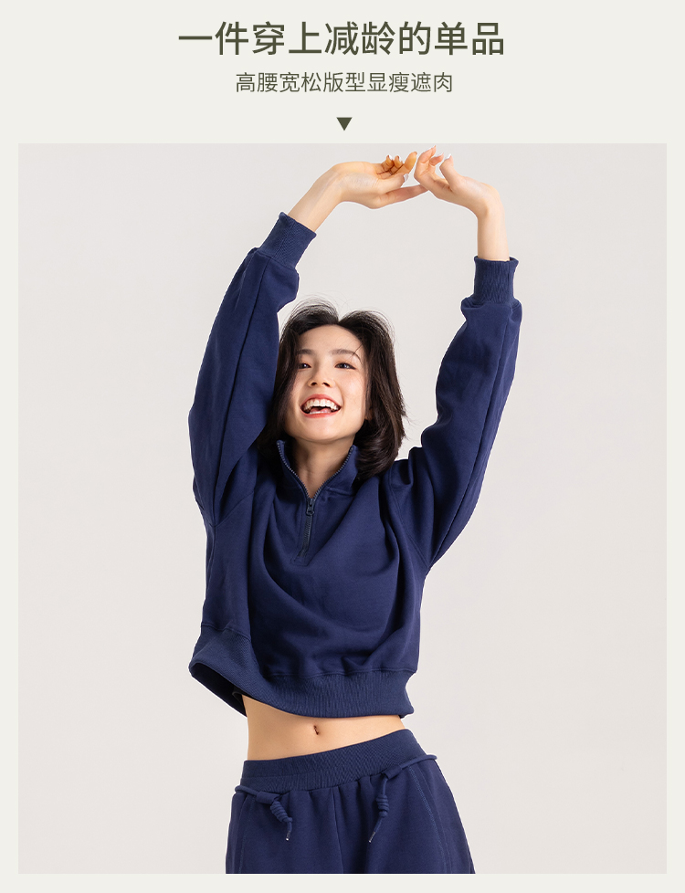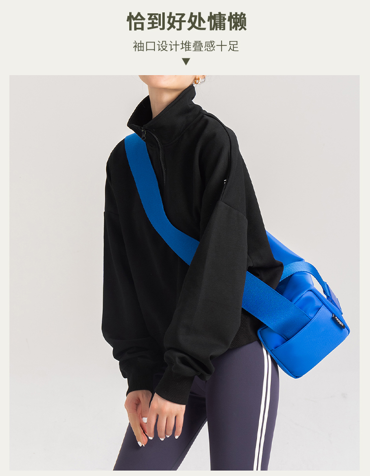 L RECNAVA [72%棉] 宽松运动套头卫衣 显瘦遮肉 半拉链高领休闲上衣